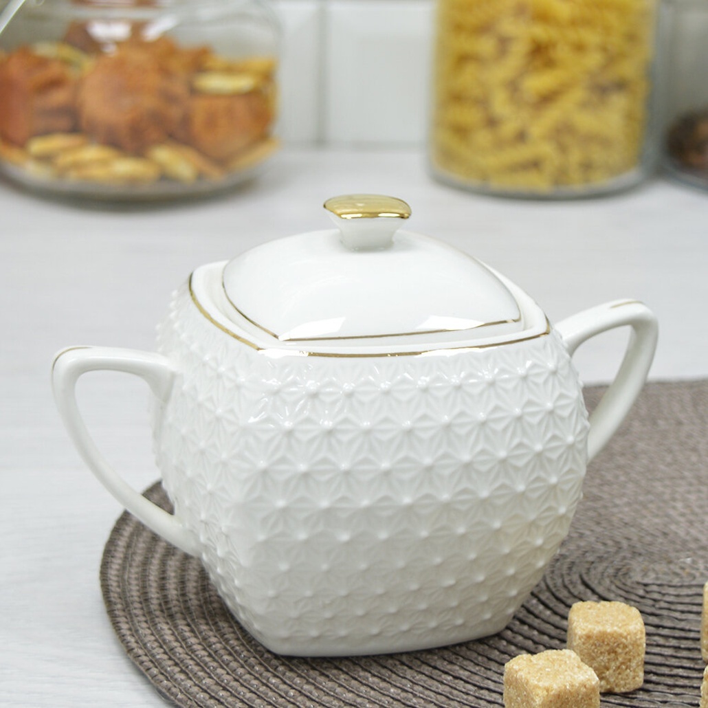 Фарфоровая сахарница подходит не только для хранения сахара, но и для сервировки чайных/кофейных церемоний. Ее стильный дизайн украсит как повседневный, так и праздничный стол.