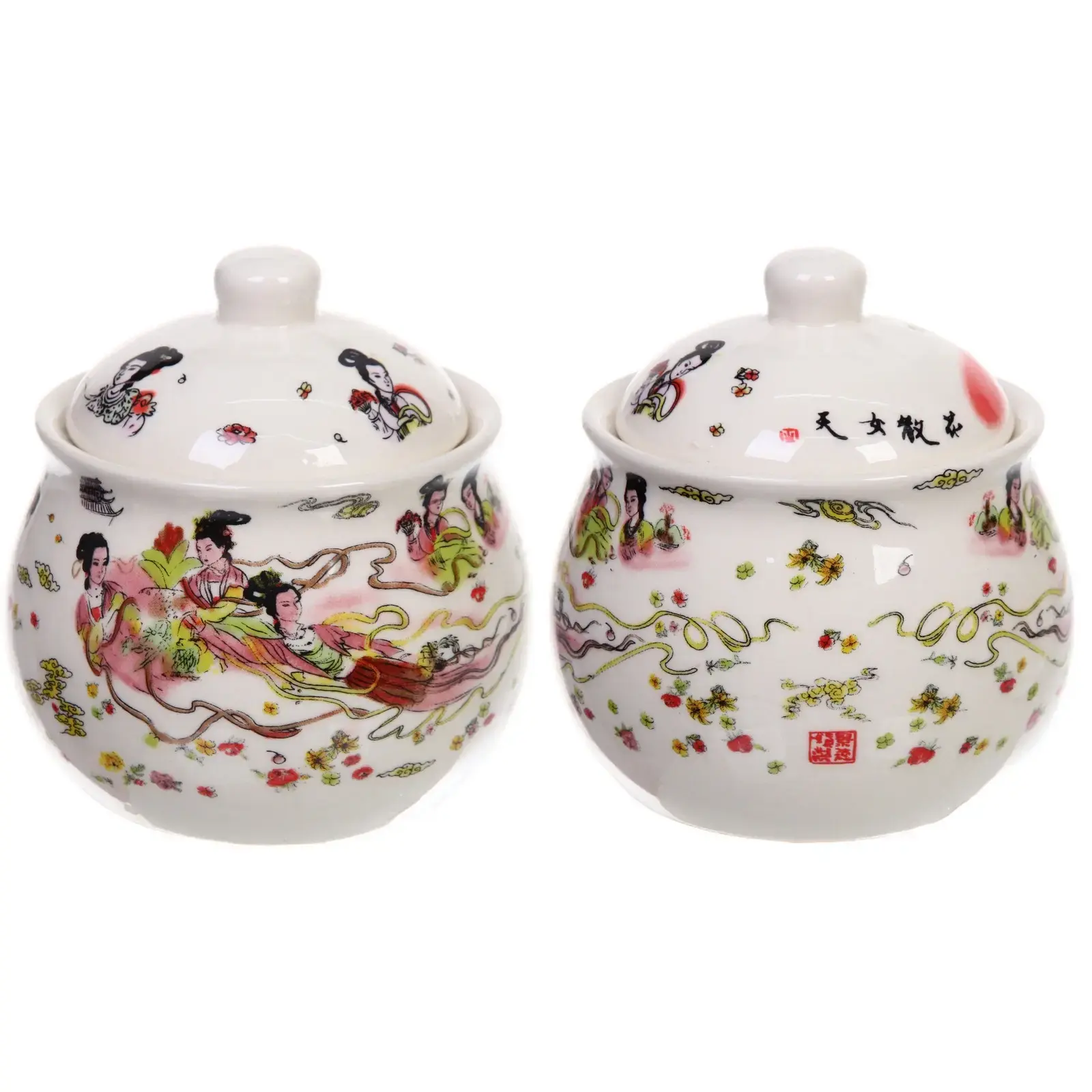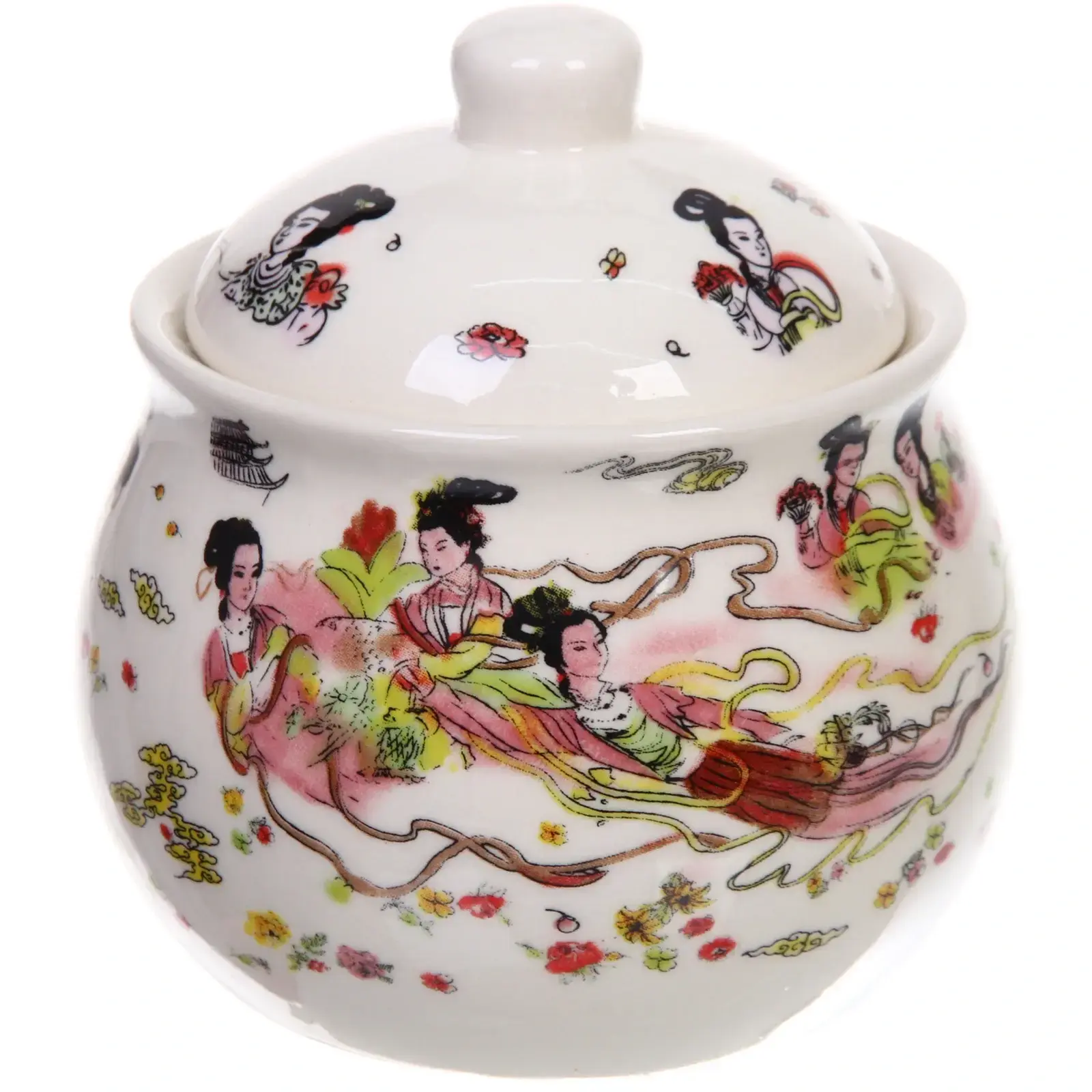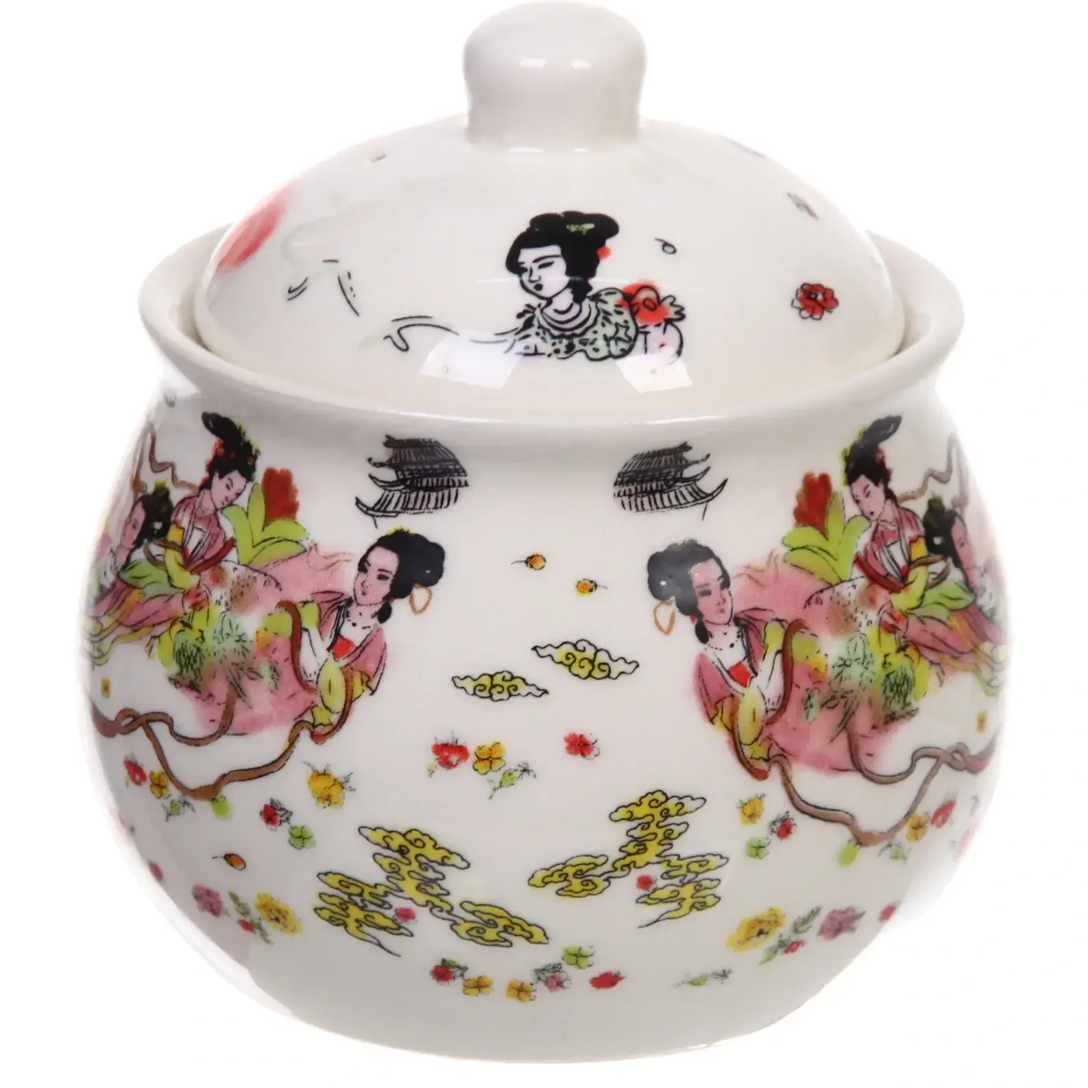Преимущества этой сахарницы заключаются не только в её функциональности, но и в эстетике. Яркие рисунки с изображением женщин в традиционных нарядах и цветочных узоров придают ей уникальность и делают её отличным подарком для любителей восточной культуры. Керамика, из которой она изготовлена, обеспечивает долговечность и лёгкость в уходе.