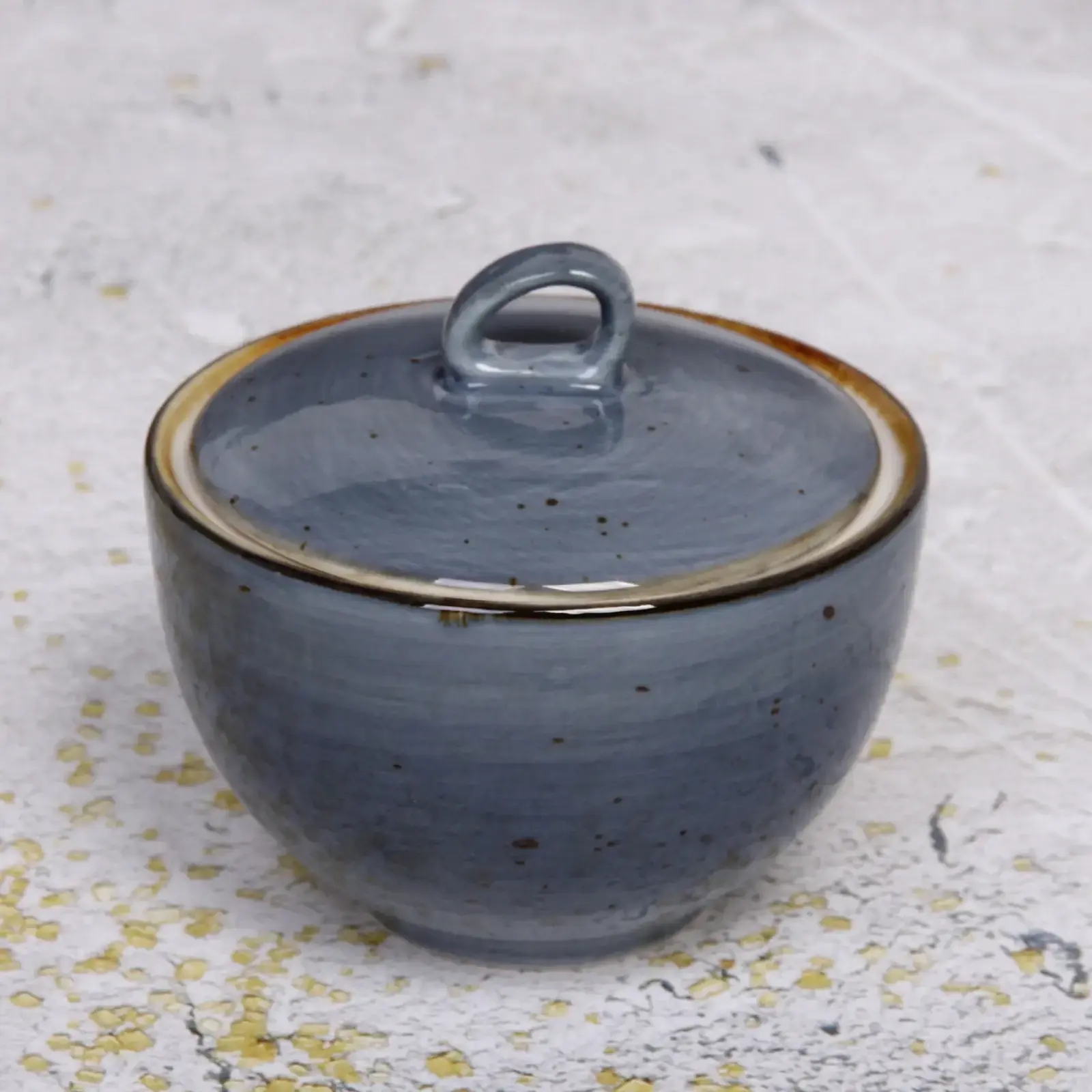 Керамическая сахарница с крышкой сочетает в себе стильный дизайн и практичность. Гладкая глазурь цвета «Corsica blue» с деликатными вкраплениями добавит изысканности вашему столу, а герметичная конструкция сохранит сыпучесть сахара и защитит от влаги.