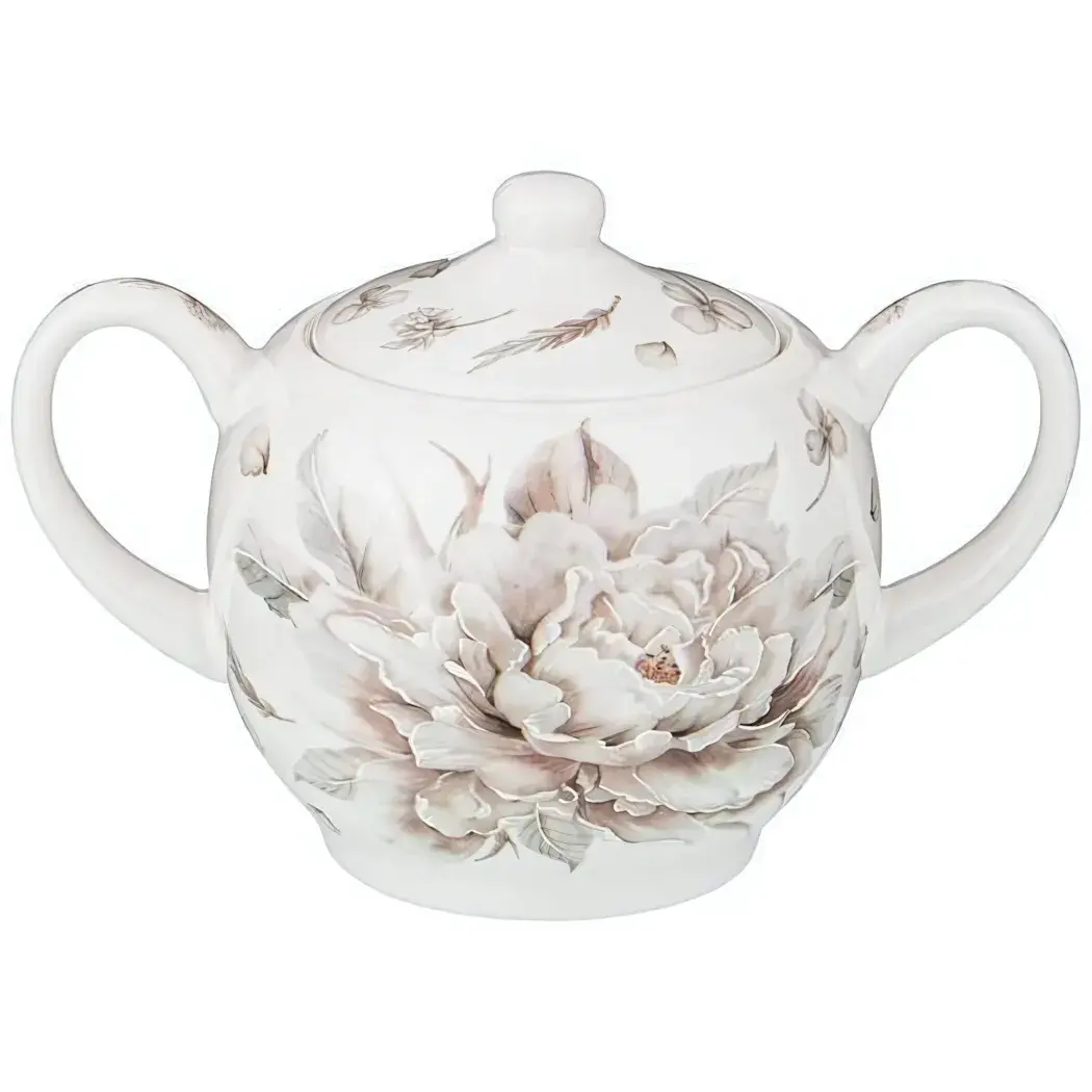 Эта сахарница станет не только функциональным, но и стильным элементом вашей кухни. Изготовленная из высококачественного фарфора, она привнесет в ваш дом атмосферу уюта и элегантности. Благодаря своему современному дизайну и роскошному белому цветку, сахарница станет прекрасным дополнением к любому столу, а также отличным подарком для близких.