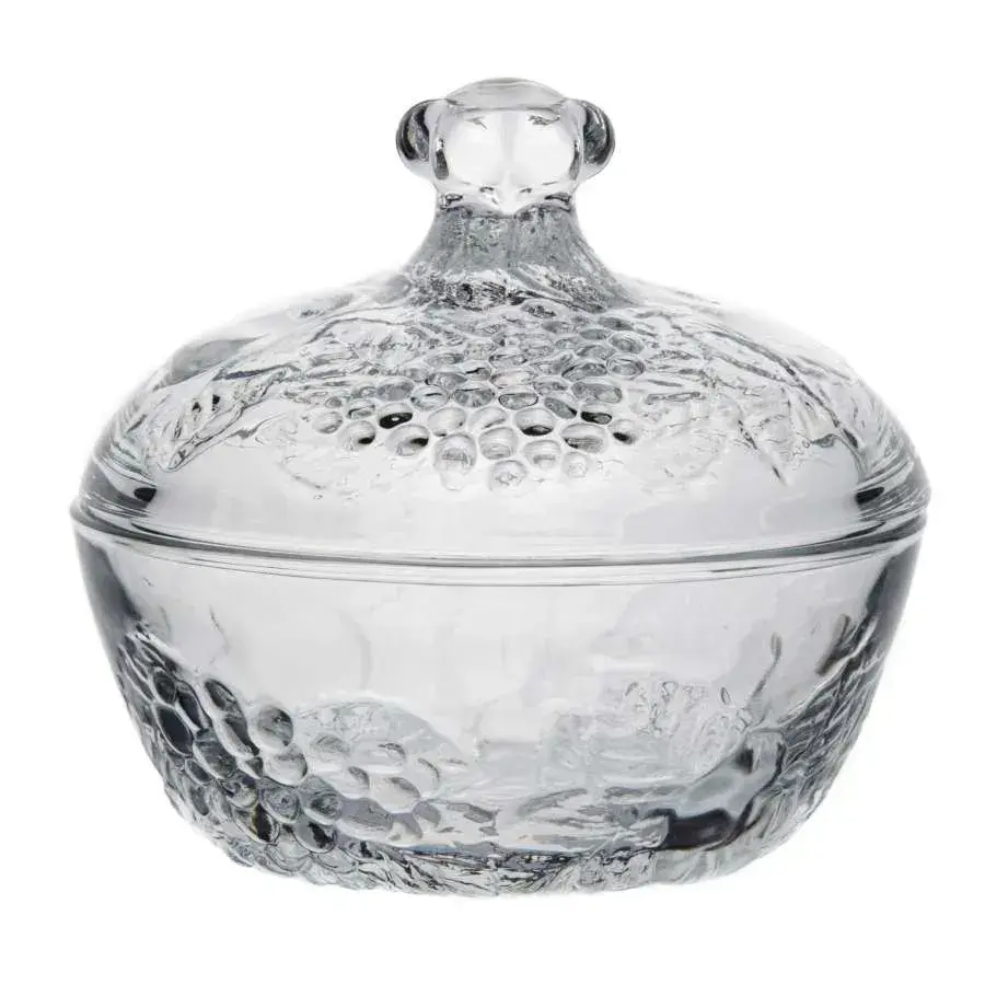 Сахарница «ПИКНИК-F&D» с крышкой, стеклянная, 131 мм, дизайн с пузырьками воздуха