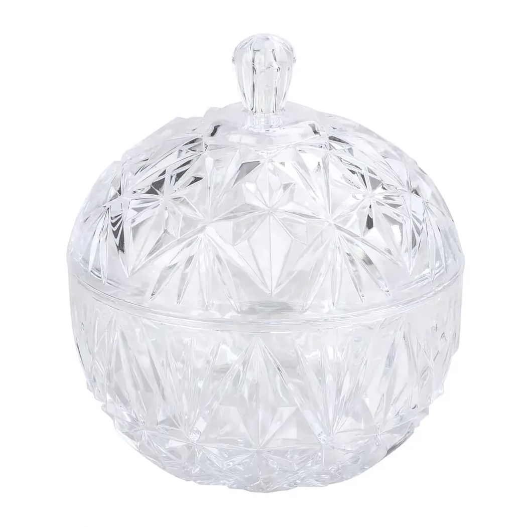 Изделие изготовлено из прочного хрустального стекла, устойчивого к царапинам и температурным перепадам. Декоративные многоугольные грани создают игру света, превращая обычную сахарницу в элемент декора. Плотно прилегающая крышка предотвращает попадание влаги и посторонних запахов.