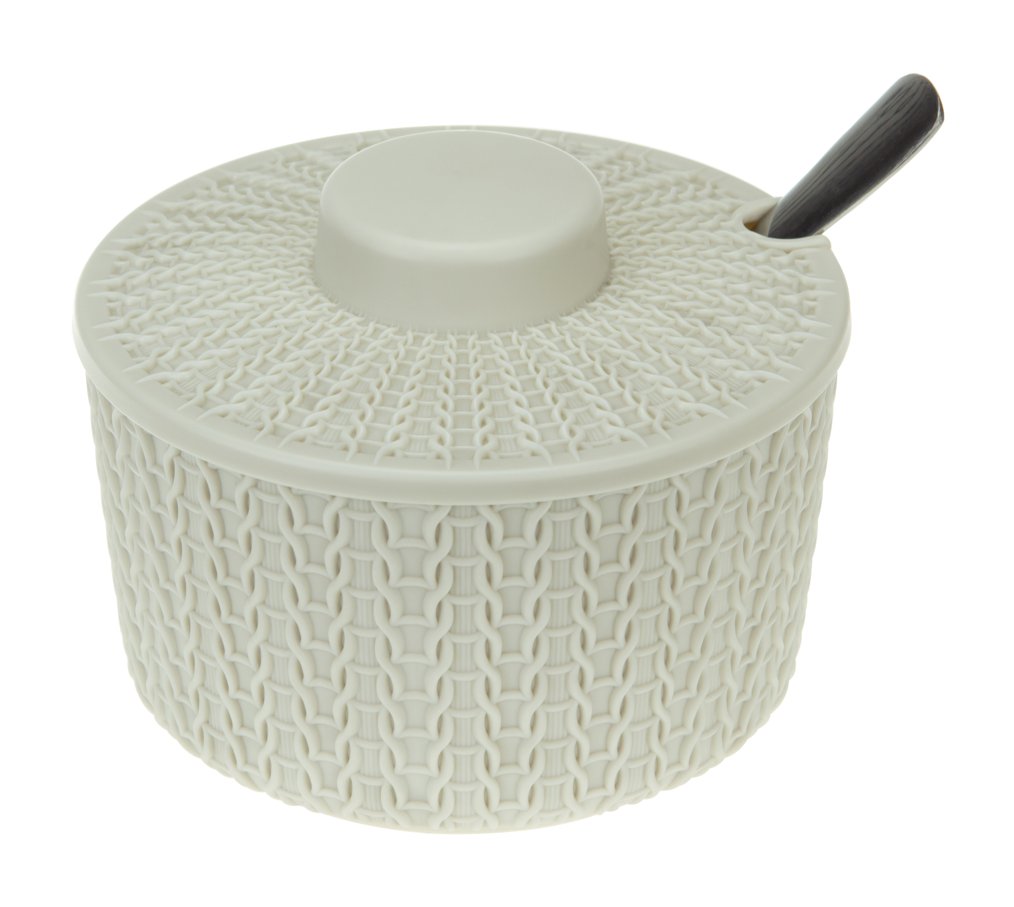 Сахарница «Вязание» сочетает практичность и уютный декор в стиле ручной работы. Герметичная крышка с удобной ручкой и специальным отверстием для ложки сохранит сыпучие продукты свежими, а изысканное плетение станет украшением вашего стола.