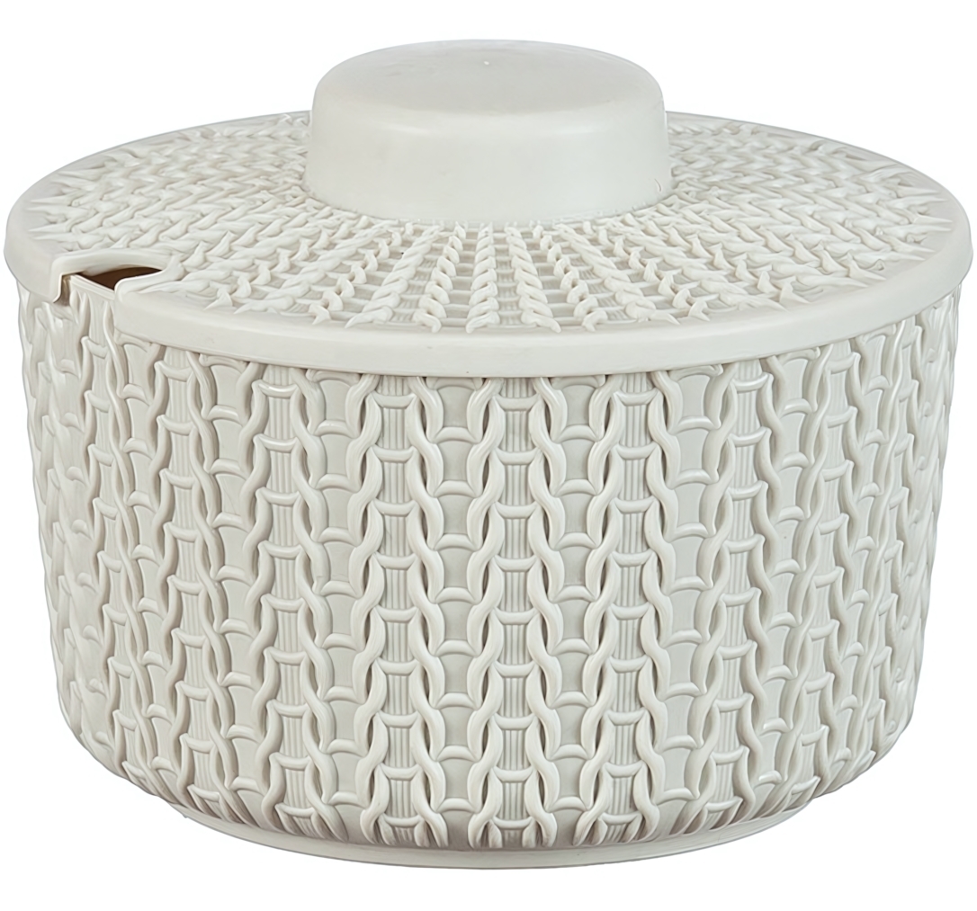 Сахарница «Вязание» 0,45л с герметичной крышкой, белый ротанг, пластик