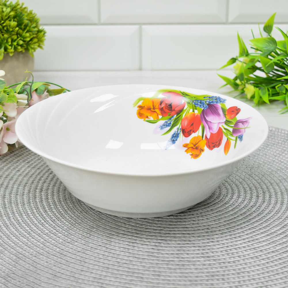 Выбирая этот салатник, вы получаете не только красивую, но и практичную посуду. Яркий цветочный рисунок, выполненный в серии 'Майский букет', добавляет изюминку и делает каждую трапезу особенной. Фарфор, из которого изготовлен салатник, отличается высокой прочностью и устойчивостью к механическим повреждениям.