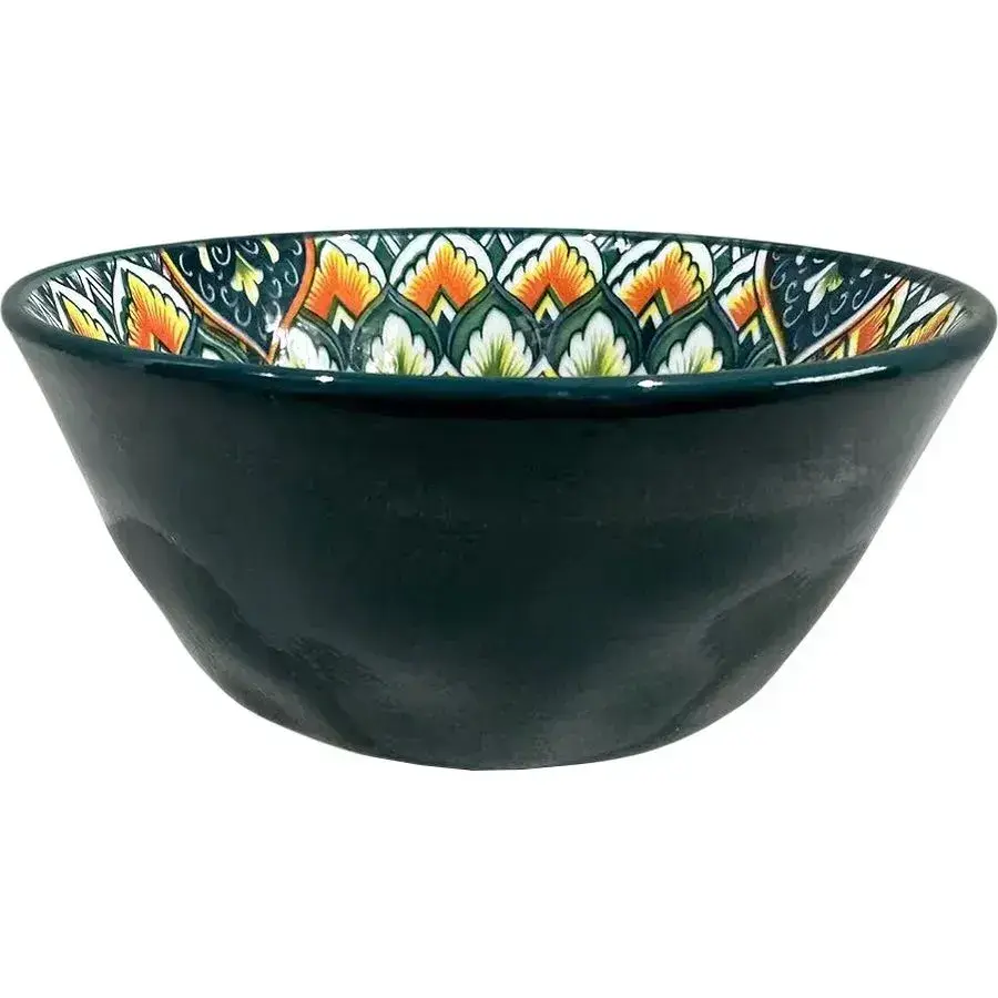 Материал: прочная керамика, диаметр: 12.5 см, цвет: темный с ярким внешним узором. Легко моется и сохраняет привлекательный внешний вид спустя годы эксплуатации.