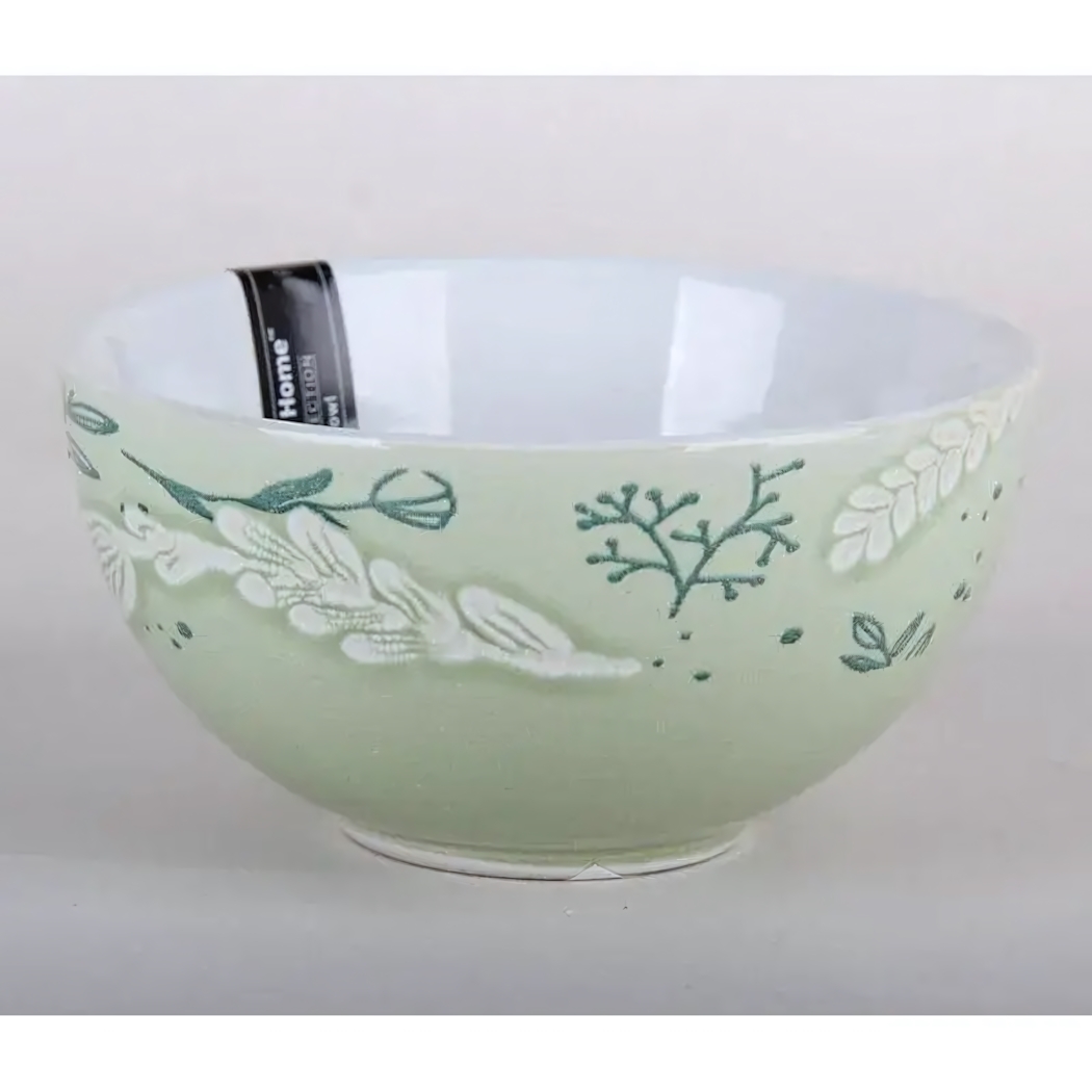 Нежный растительный орнамент в зеленых тонах сочетается с любой посудой. Светло-зеленые внешние стенки контрастируют с белым внутренним покрытием — идеально для демонстрации содержимого.