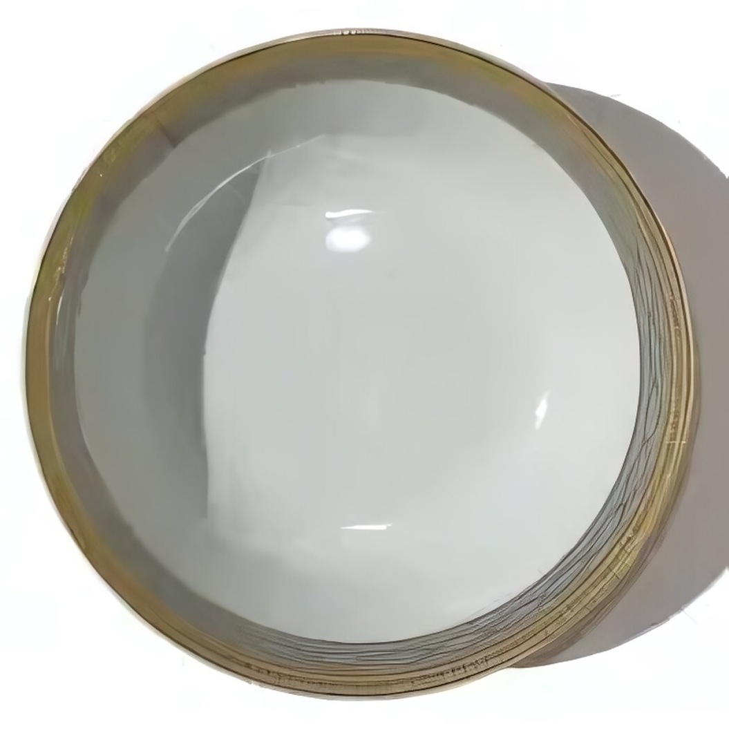 Глубокая чаша (высота 6 см) предотвращает выпадение содержимого, а закругленные края обеспечивают удобство при переноске. Классический белый цвет гармонирует с любой посудой, а золотой декор создает эффект праздничной сервировки даже в будни. Совместим с посудомоечной машиной и СВЧ-печью для вашего комфорта.