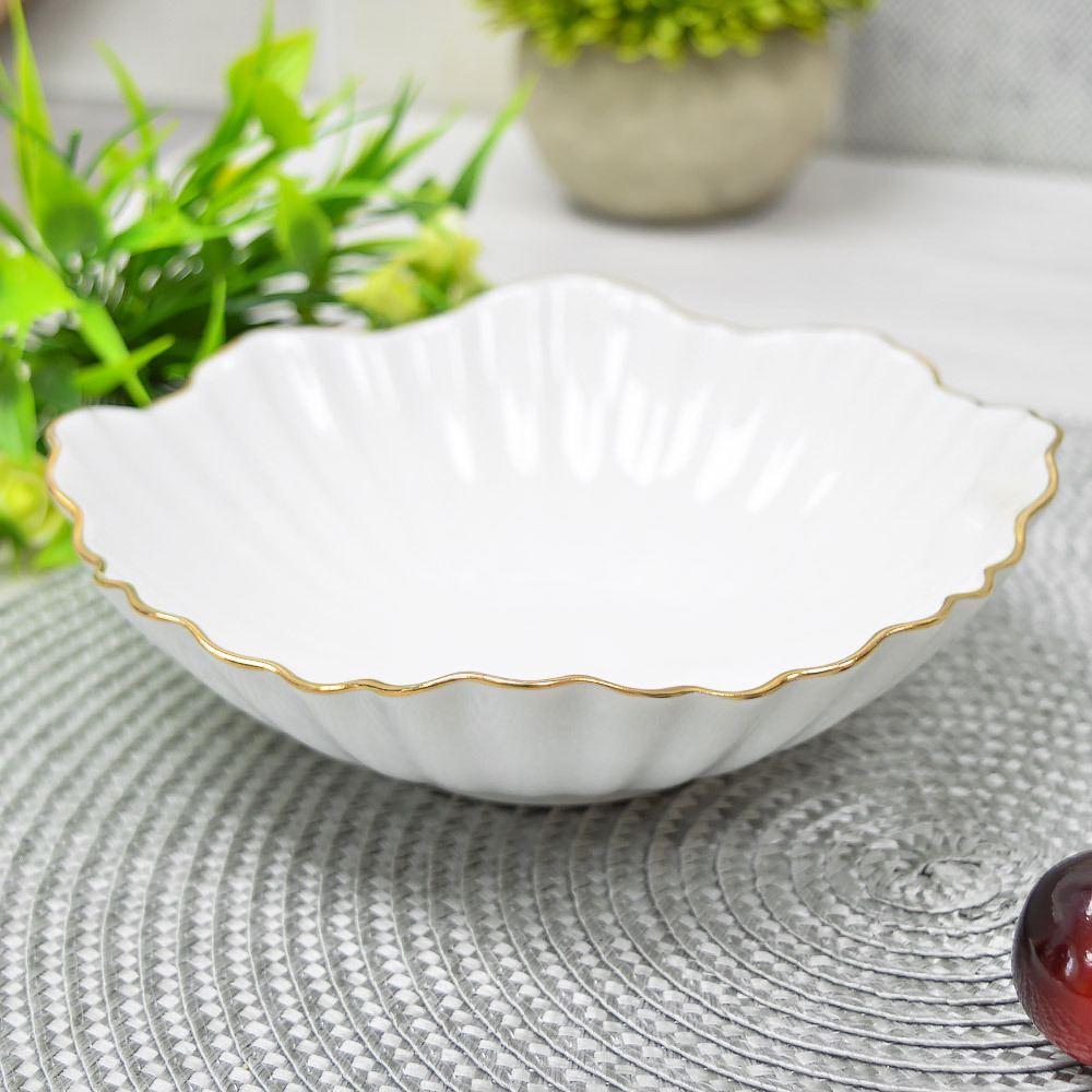 Салатник фарфоровый "HoReCa" 360 мл, жемчужная форма, золотой край, 14х14х5 см