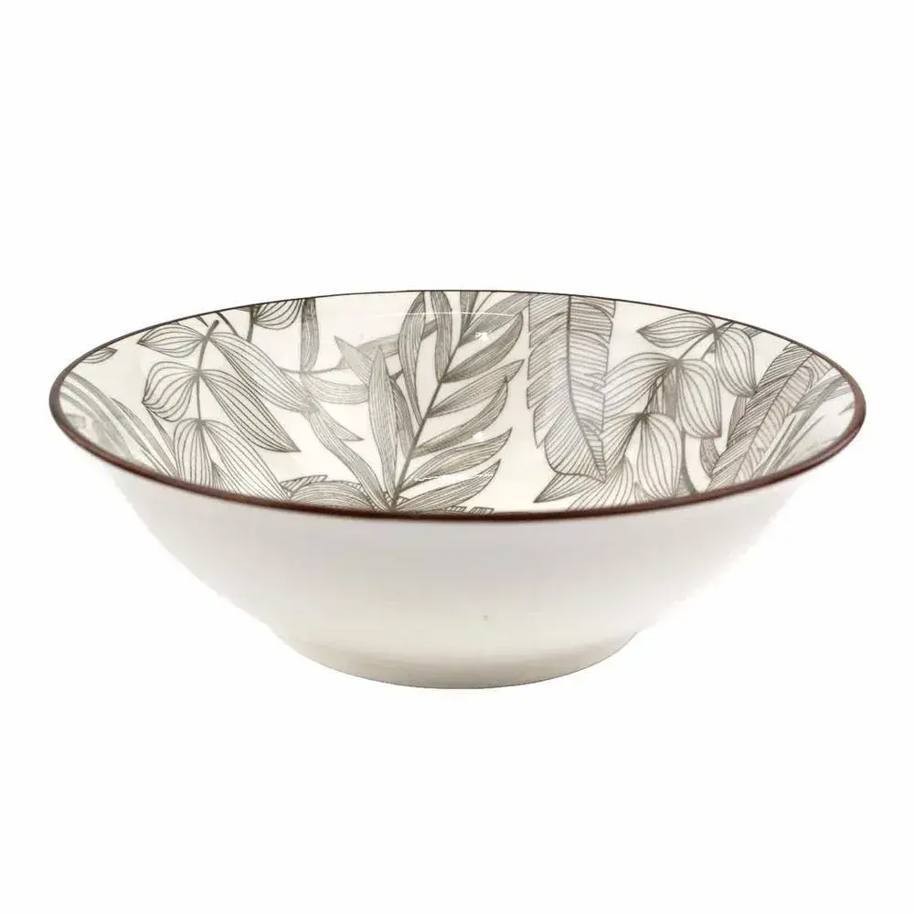 Нежный рисунок в виде веток с серыми листьями создает эффект ручной росписи. Коричневая контурная окантовка добавляет изделию завершенности и сочетается с любой посудой. Классический белый фон делает салатник универсальным для разных стилей интерьера.