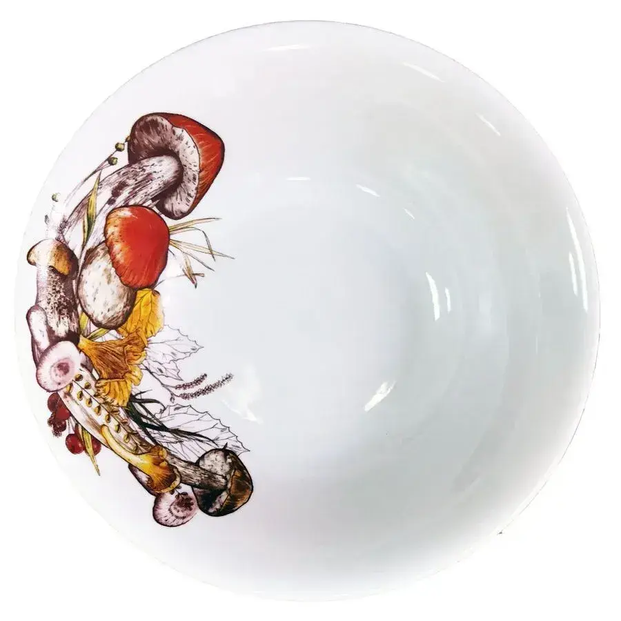 Ручная роспись с ботаническими мотивами создает эффект живой природы на вашем столе. Реалистичные изображения белых грибов, подосиновиков и лесных трав переносят в атмосферу прогулки по осеннему лесу.