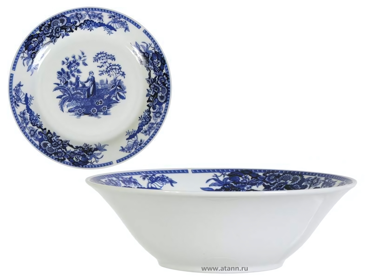 Товар представлен в единичном экземпляре, выполнен из высококачественного фарфора с традиционным сине-белым декором. Диаметр изделия составляет 20 см, что обеспечивает комфортное использование.