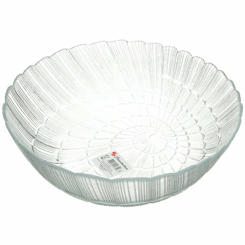 Диаметр 27 см оптимален для порций на 4-6 человек. Изготовлен из ударопрочного стекла, которое сохраняет прозрачность после сотен циклов мойки. Волнистый край и фактурная поверхность делают посуду узнаваемой в вашем кухонном гарнитуре.