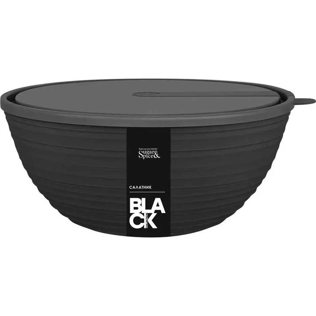 Салатник с крышкой «Black», 1,2 л, пластик, герметичное хранение, ребристая текстура, Sugar&Spice