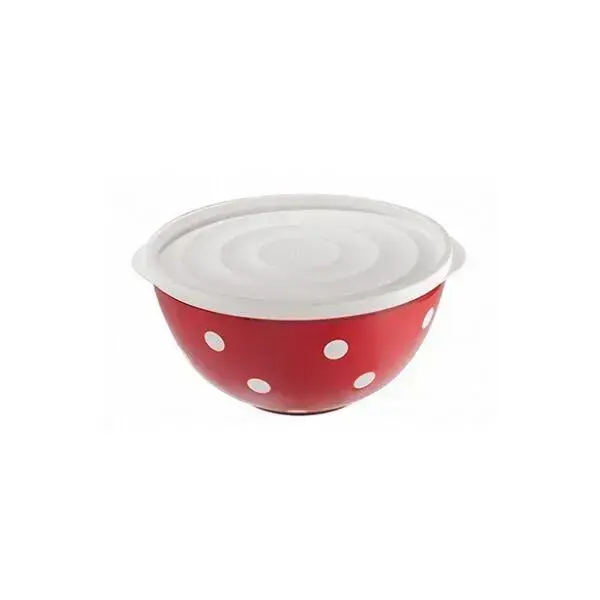 Салатник с крышкой 2 л, пластиковый, герметичный, красный/белый, дизайн с точками