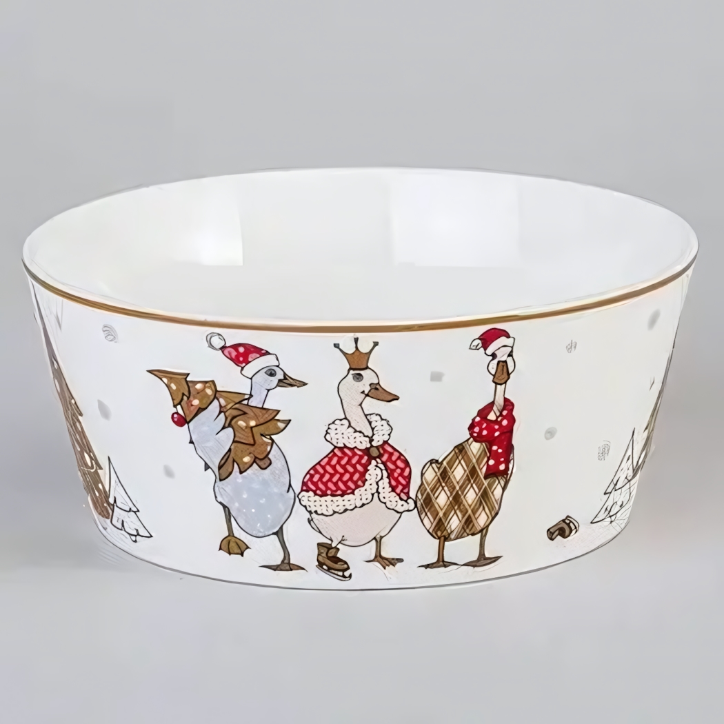Создайте атмосферу тепла и уюта на своём столе с фарфоровым салатником «Family christmas» объемом 650 мл. Его изысканный новогодний рисунок с тремя утками в зимних нарядах украшен тонкой золотистой линией по краю, что делает подачу блюд по-настоящему праздничной.