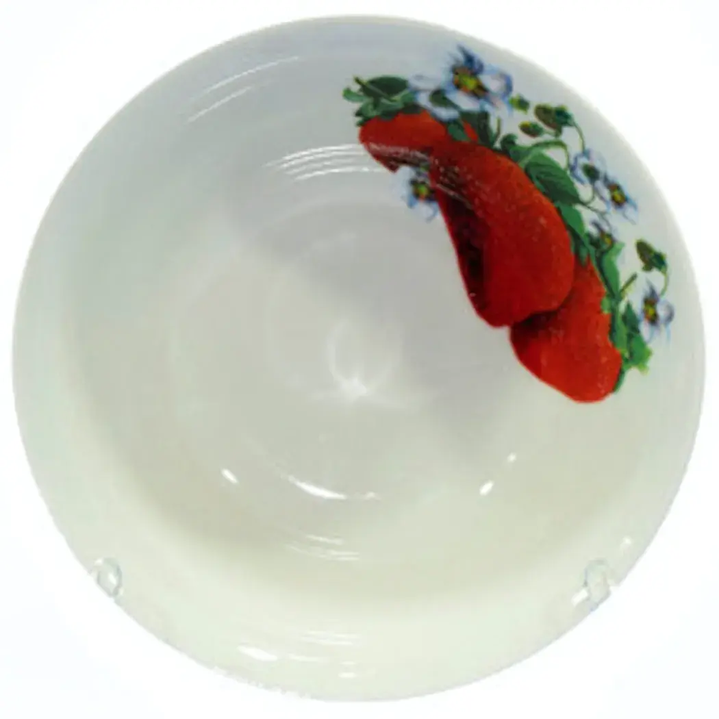 Белый фон с яркими акцентами подчеркивает содержимое блюда, сохраняя визуальную гармонию. Универсальная глубина позволяет использовать как для жидких соусов, так и для многослойных салатов.