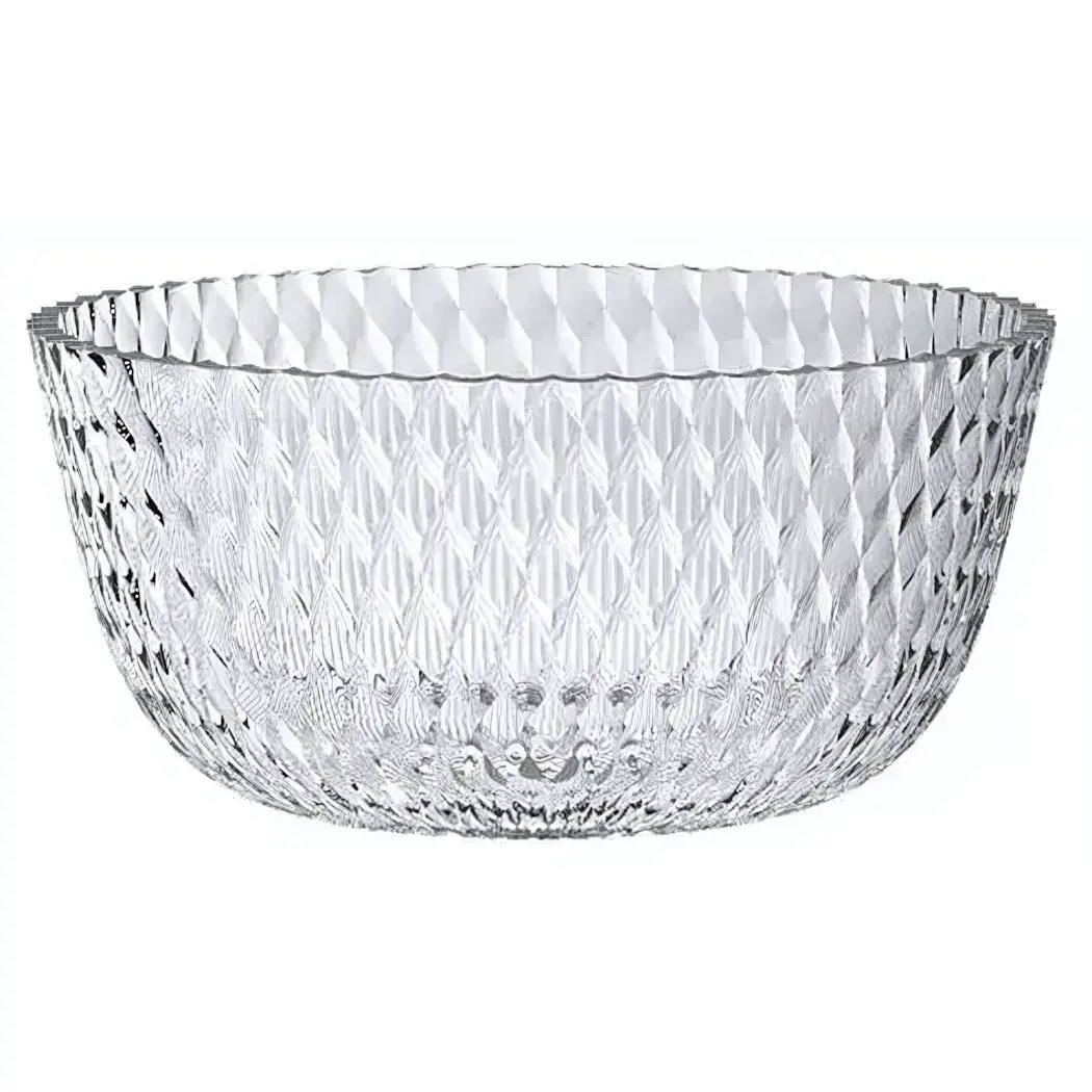 Прозрачная стеклянная чаша с рифлёным узором станет универсальным помощником в сервировке блюд и хранении продуктов. Идеальное сочетание функциональности и стиля для современного стола.