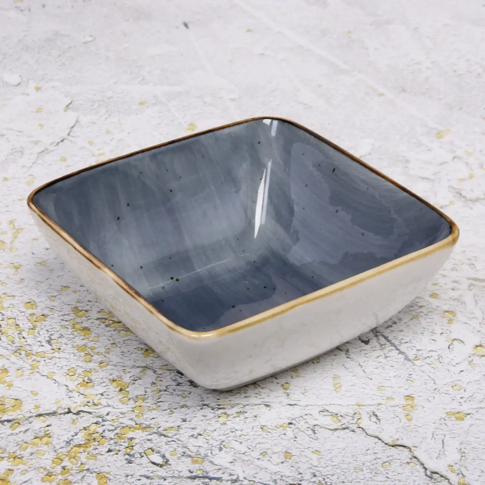 Салатник керамический «Corsica blue», квадратный 13,7х13,7х5,8 см, синий с золотой окантовкой, устойчивый к сколам