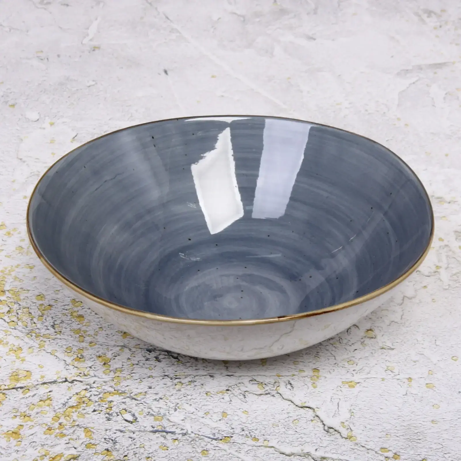 Салатник станет украшением праздничного стола благодаря сочетанию матовой внешней поверхности с глянцевой внутренней отделкой. Нежный голубой оттенок внутри создаёт эффект глубины, а классическая круглая форма гарантирует удобство подачи.