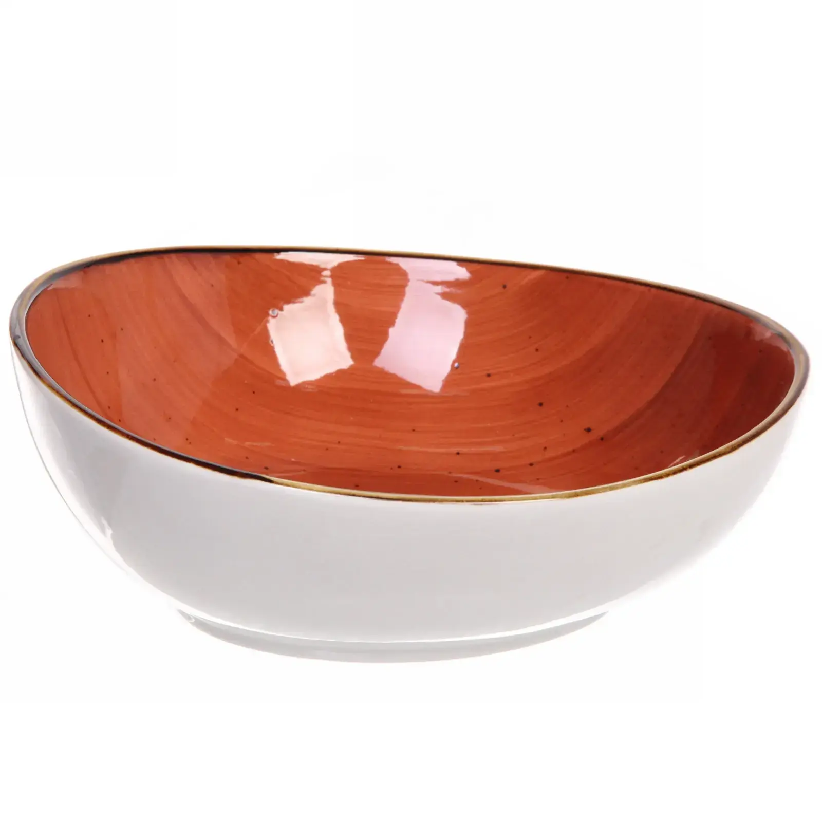 Салатник керамический «Corsica orange» 23х21,5х8см, красно-оранжевый с золотой окантовкой, устойчивый к сколам