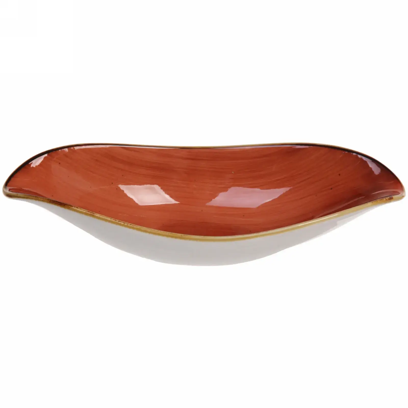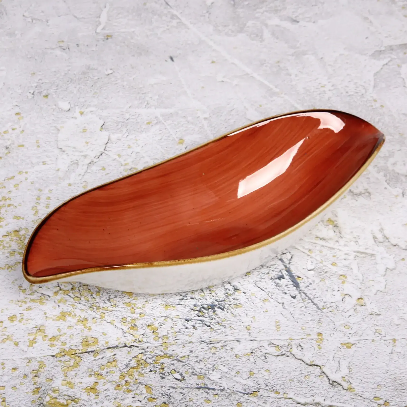 Размер 31×11,2×7 см оптимален для порционной подачи блюд. Контрастное сочетание насыщенного оранжевого интерьера и белого экстерьера с золотистой полосой добавляет изысканности любой сервировке. Особенная лодкообразная форма создаёт эффектную презентацию кулинарных композиций.