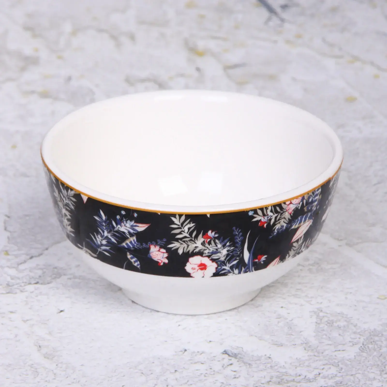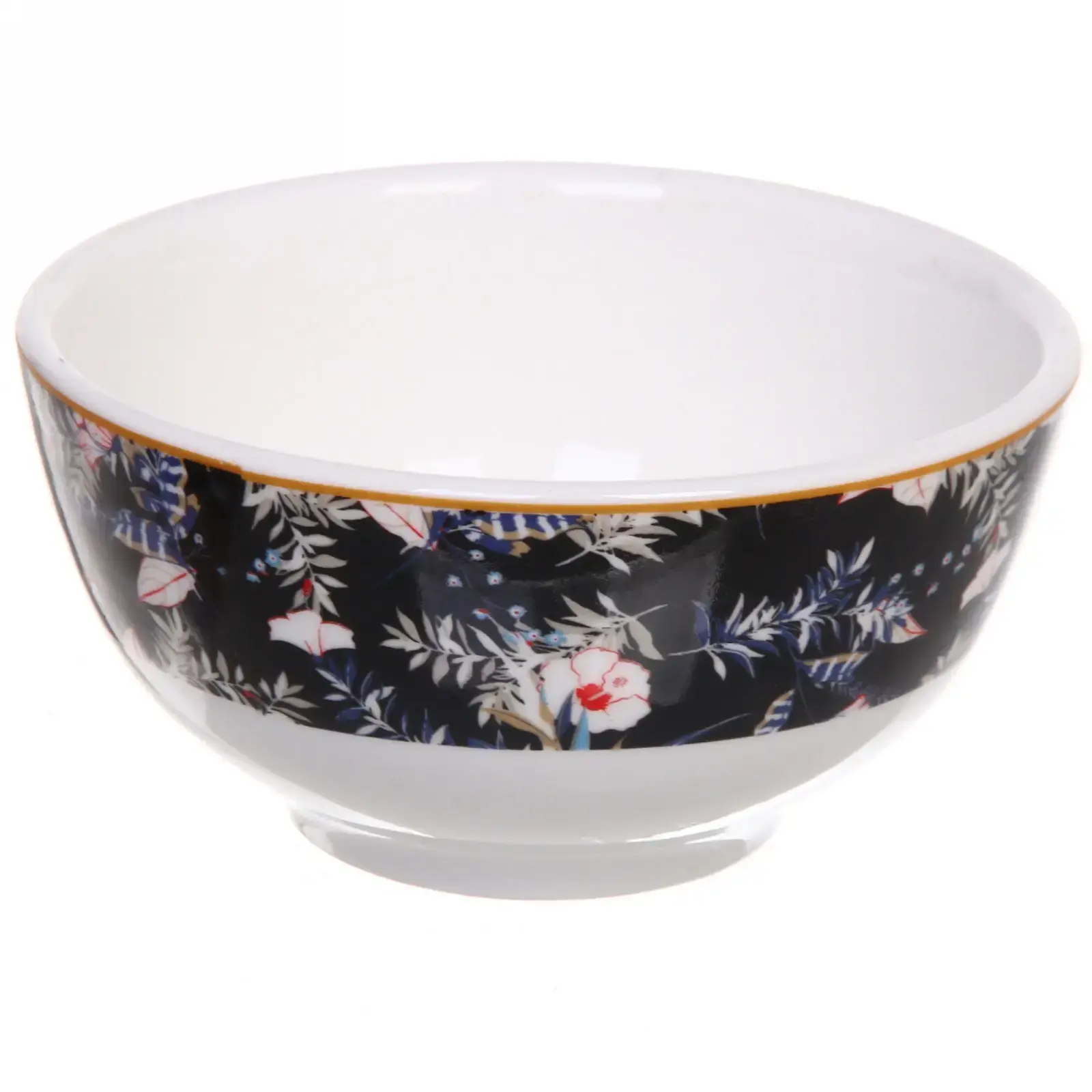Салатник керамический «Paradise» 11,5см, черный с золотистым ободком, цветочный декор