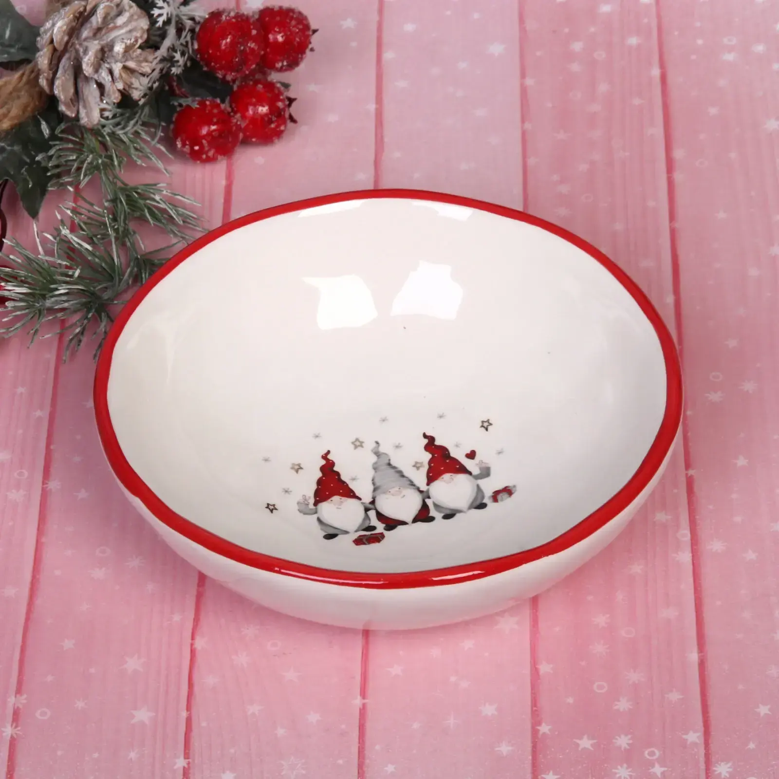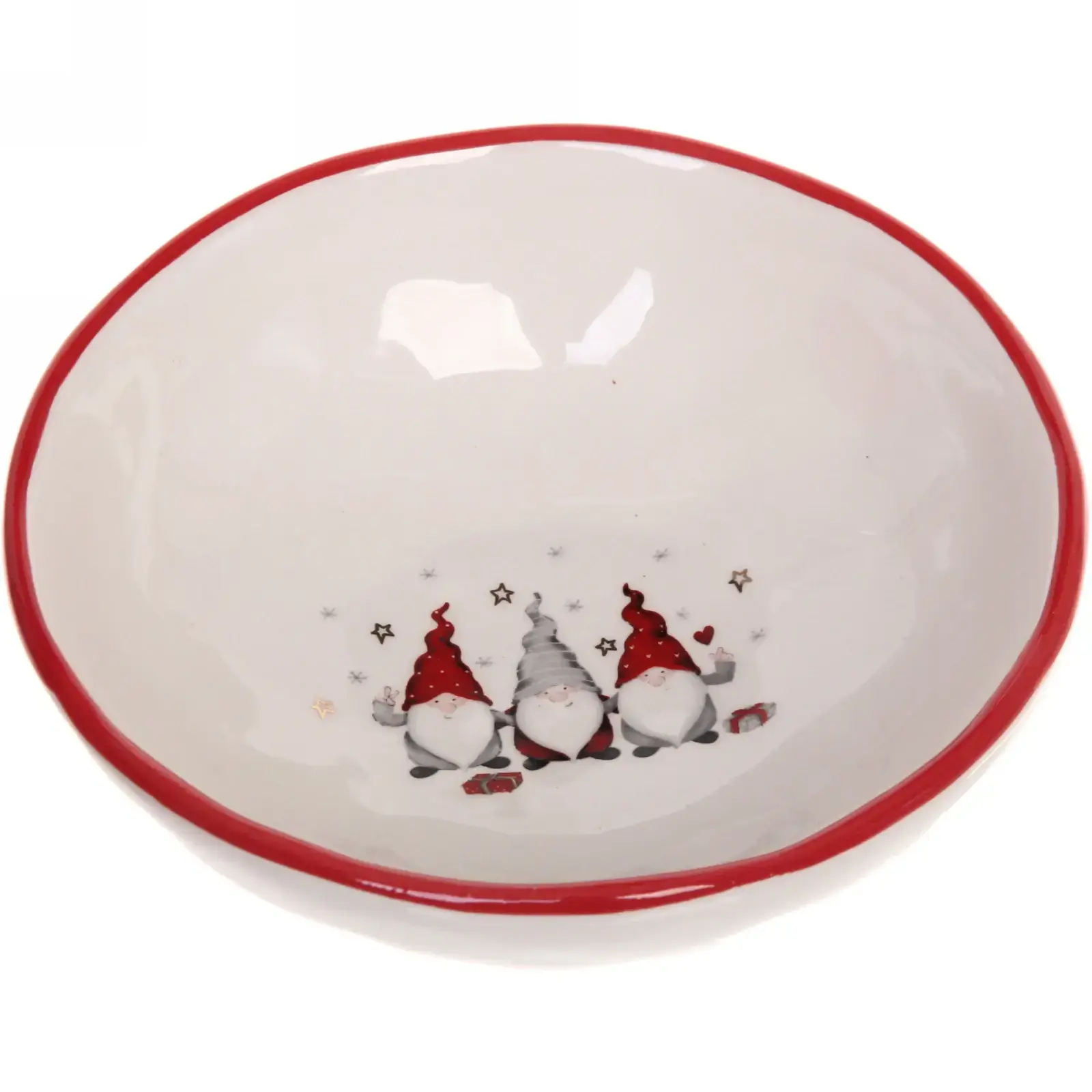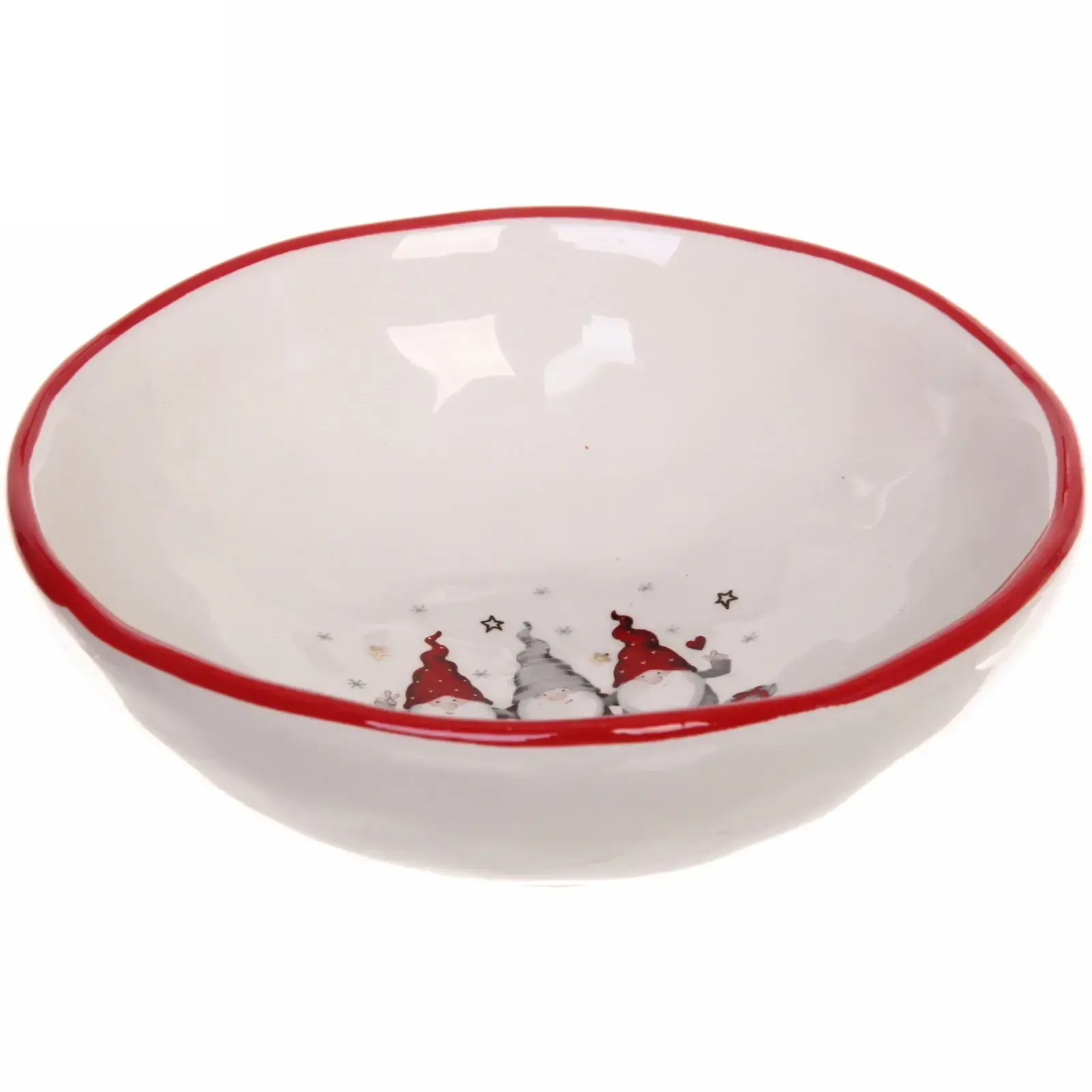 Этот красивый салатник объемом 500 мл идеально подойдет для сервировки праздничных обедов и ужинов. Яркий дизайн с изображением гномов и элементами новогодней тематики создает атмосферу торжества и уюта. Выполнен из прочной керамики, обладает гладкой, блестящей поверхностью, устойчив к повреждениям и легко моется.