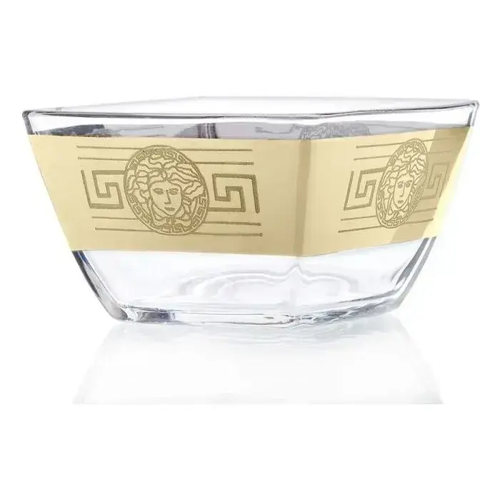 Салатник квадратный из стекла «Версаль SL» 70 мм с декором, цвет шампань