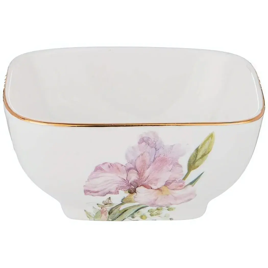 Салатник из коллекции «IRISES» — это не просто посуда, а настоящее произведение искусства, которое добавит изысканности вашему столу. Его уникальный дизайн с изображением нежных ирисов и золотой окантовкой создаст атмосферу уюта и стиля на любом празднике или семейном ужине.