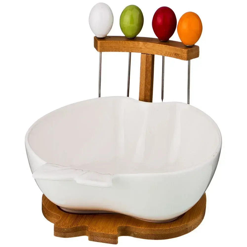 Салатник Lefard «Native» с деревянной подставкой и 4 вилочками, керамика 16,5×15×12 см