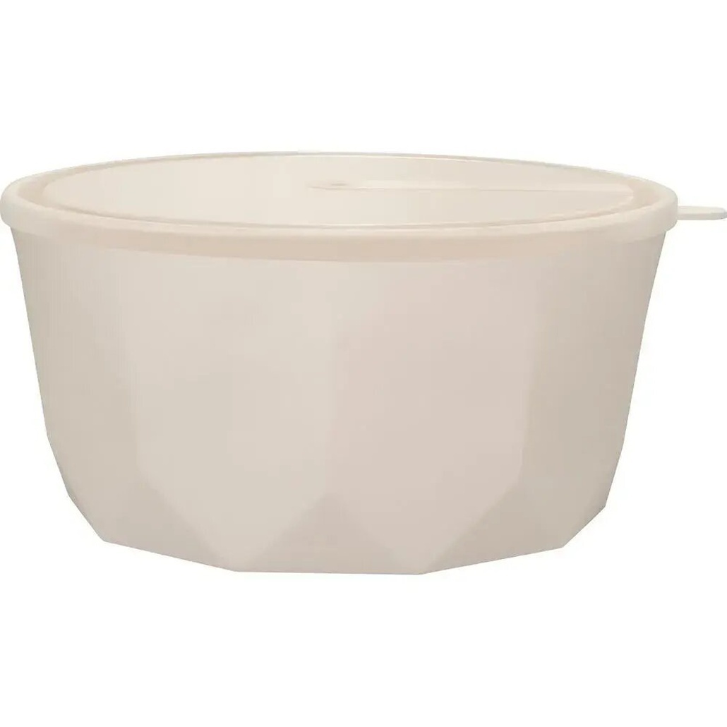 Изготовлен из качественного пищевого пластика, не впитывающего запахи. Матовая поверхность в нежном молочном оттенке гармонично впишется в современную кухню. Плавные линии корпуса и эргономичный выступ на крышке обеспечивают удобный захват.
