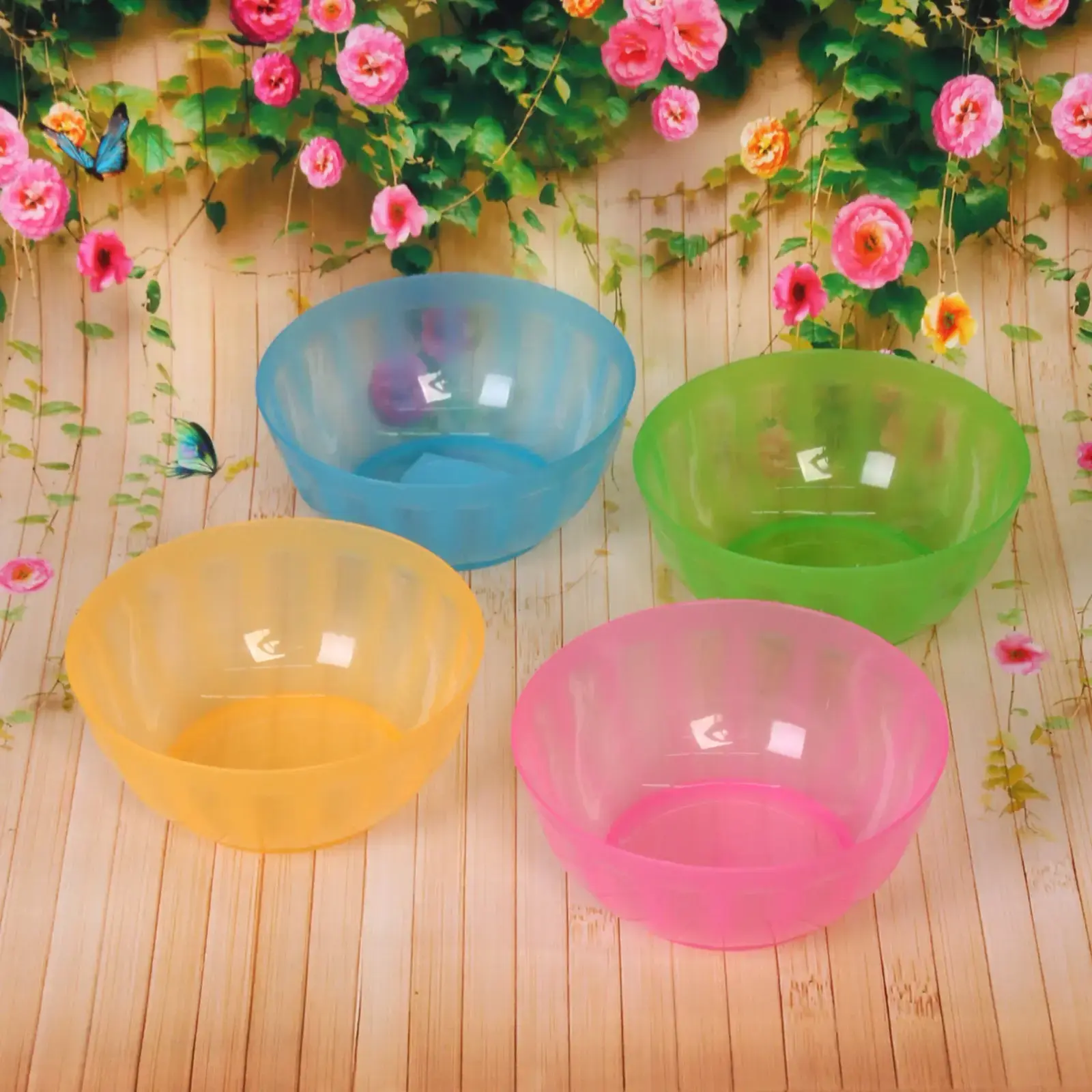 Салатники выполнены из качественного пластика, что делает их легкими и прочными. Они не боятся падений и легко моются, что экономит ваше время на уборку. Миски имеют округлую форму и низкий бортик, что позволяет удобно накладывать еду и легко перемешивать ингредиенты. Набор из четырех мисок разных цветов — розовой, голубой, зеленой и желтой — позволит вам разнообразить подачу блюд и создать яркую атмосферу на столе.