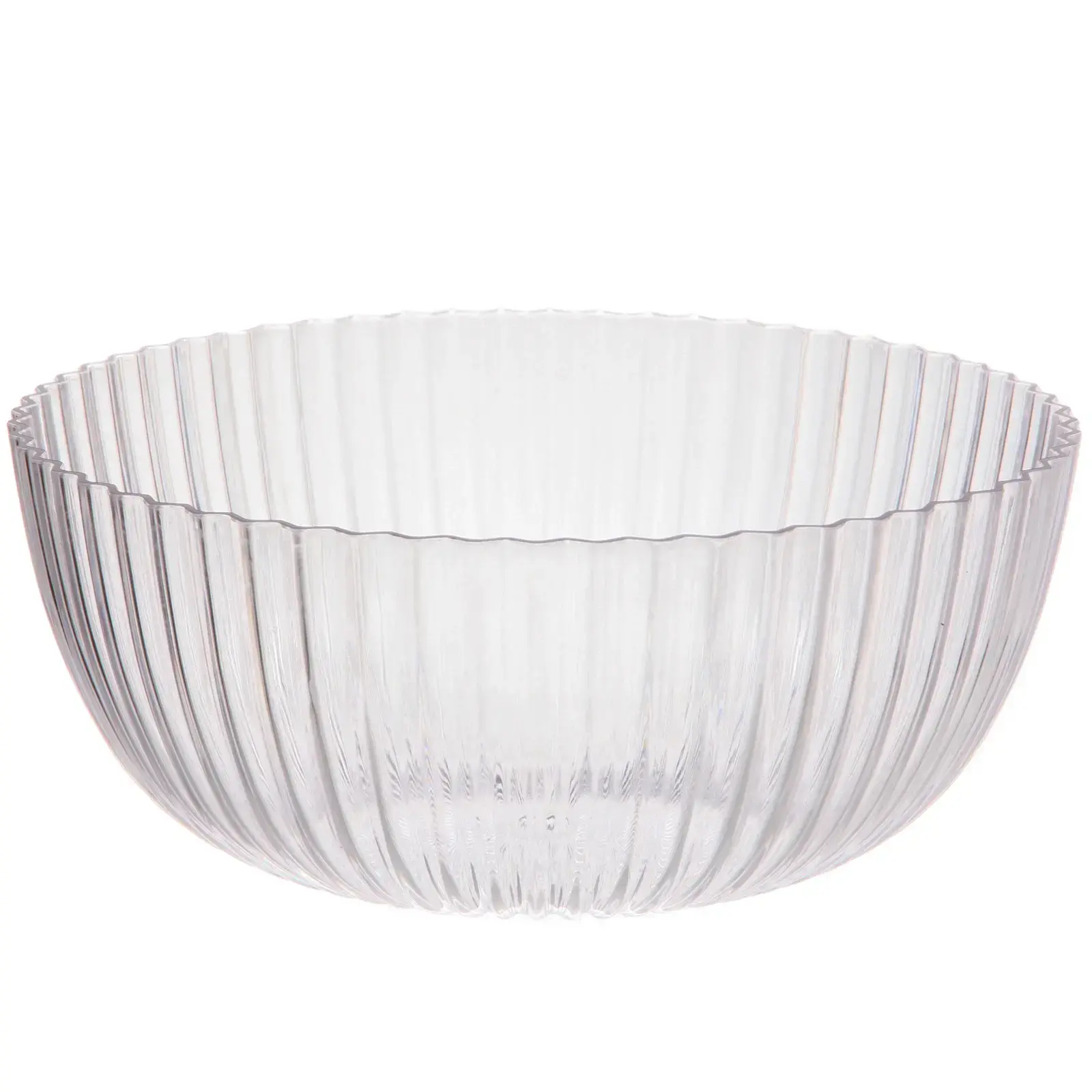 Чаша диаметром 25 см и высотой 10,5 см оптимальна для хранения в стандартных кухонных шкафах. Гладкая внутренняя поверхность упрощает мытьё, а рифлёные стенки создают эффектную игру света. Совместим с большинством моющих средств — сохраняет прозрачность после сотен циклов использования.