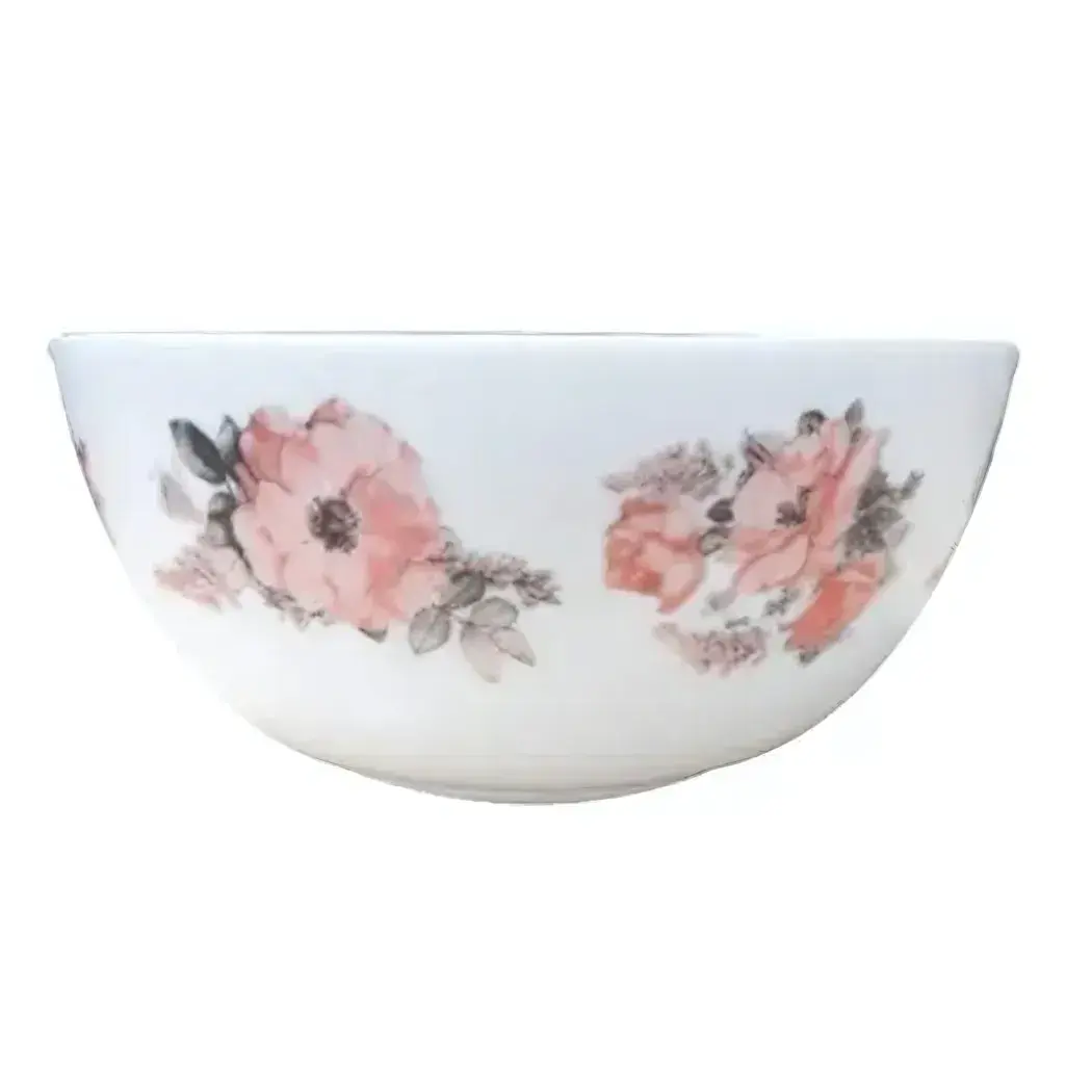 Стеклянная чаша с нежной цветочной росписью станет украшением праздничного ужина и семейных обедов. Пастельные розовые бутоны на белом фоне создают атмосферу уюта, а прочное стекло гарантирует долгий срок службы.