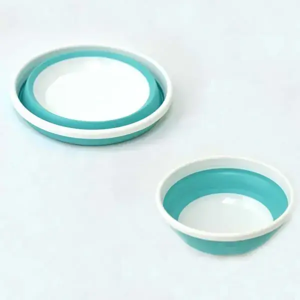 Салатник складной Compact 0,7 л с 2 вложенными блюдами, пластик, бирюзовый ободок