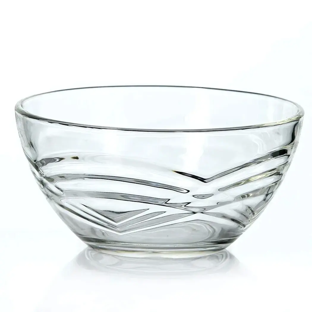 Уникальный волнообразный орнамент на внешней поверхности добавляет посуде визуальный объем. Благодаря прозрачности материала содержимое салатника становится частью сервировки, сохраняя аппетитный вид блюд.