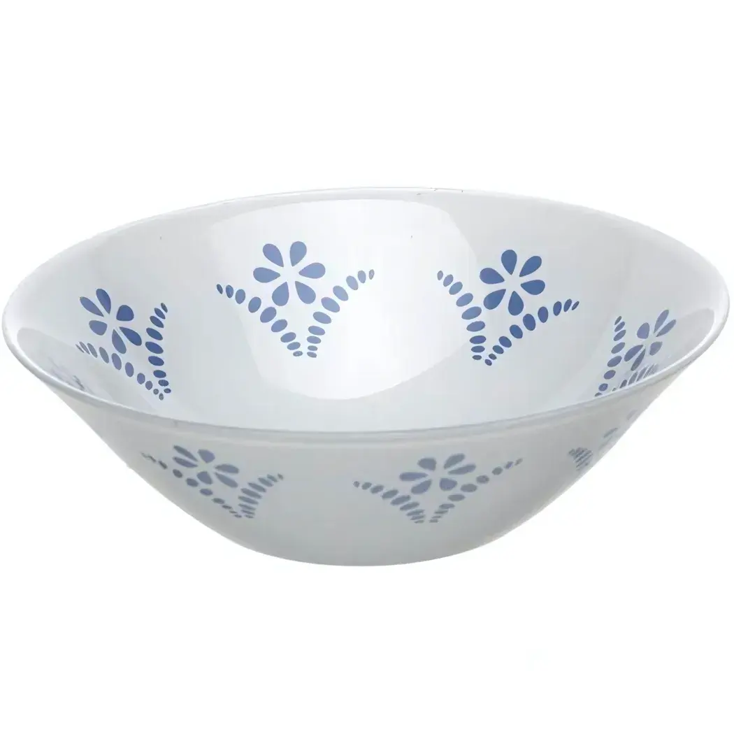 Салатник стеклянный 16,2см «Нордик», бело-голубой цветочный узор, для сервировки и хранения