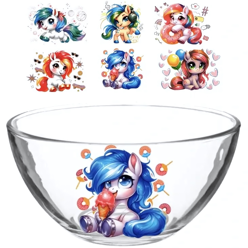 Салатник стеклянный объемом 250мл из серии «Милый лошадки» – это идеальное сочетание качества и яркого дизайна. Он станет обязательным атрибутом как для повседневного использования, так и для праздничных мероприятий. Его стильный декор с изображениями мультяшных единорогов и сладостей придаст вашему столу необыкновенный шарм и создаст атмосферу веселья.