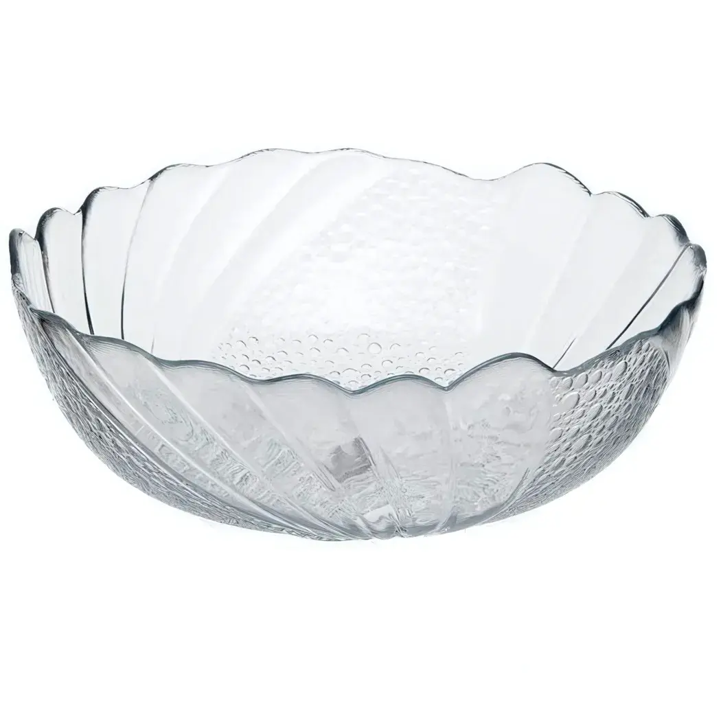 Этот салатник прекрасно подходит для сервировки различных блюд: от свежих салатов до фруктовых композиций. Его округлая форма и волнистые края делают его не только практичным, но и эстетически привлекательным. Благодаря прозрачному материалу, вы сможете продемонстрировать красоту ваших кулинарных шедевров, а рельефный узор добавит текстурности и интереса к подаче.