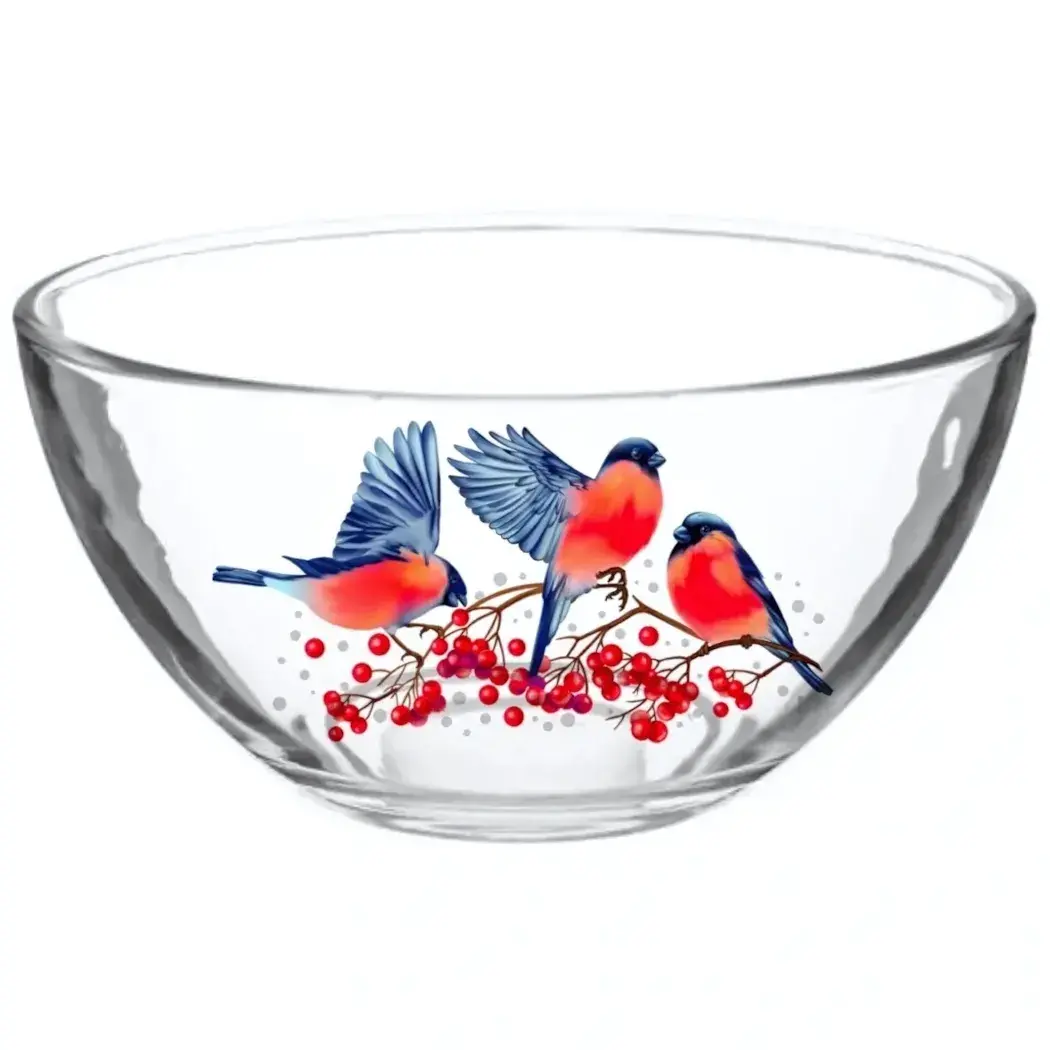 Салатник стеклянный «Снегири» 450мл
