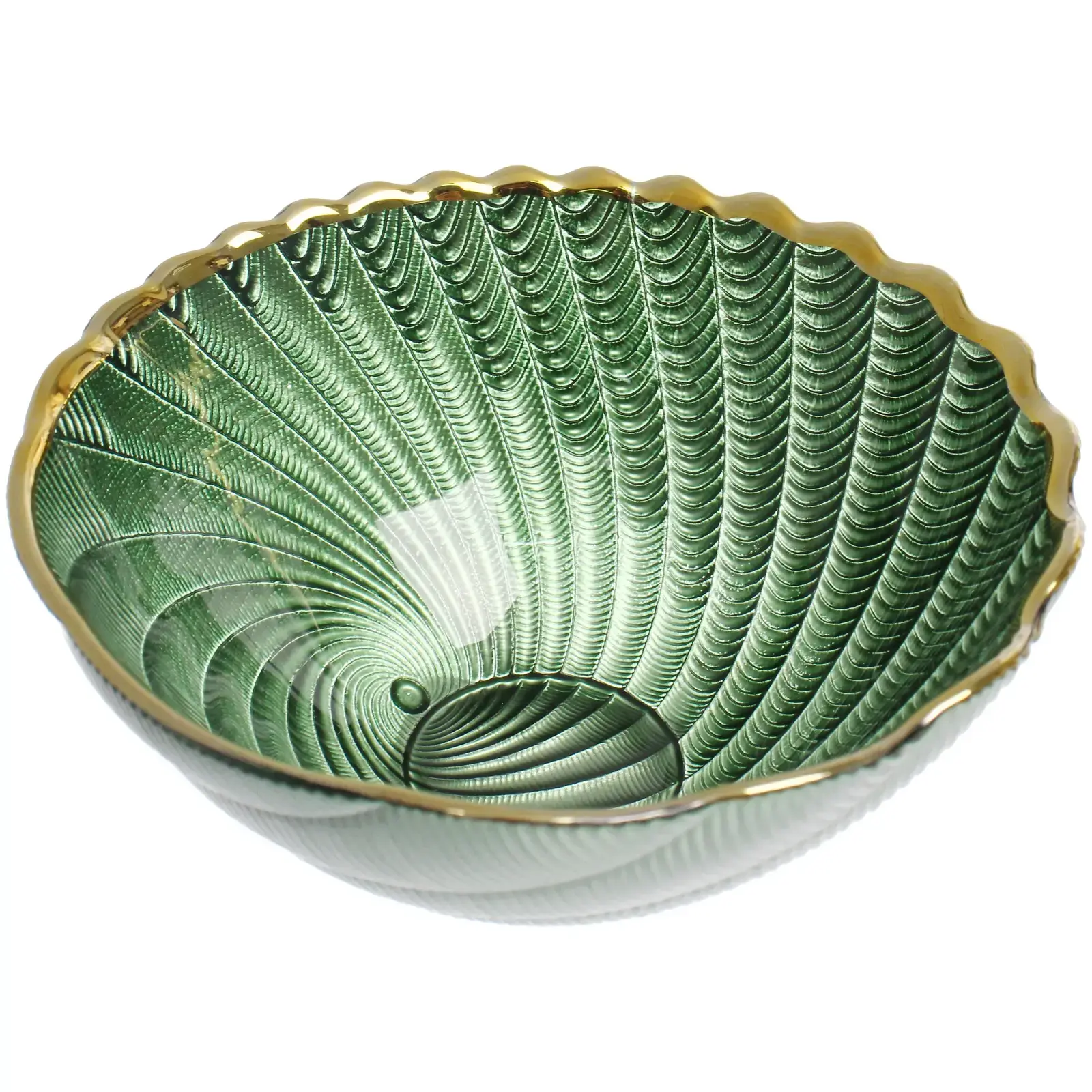 Салатник стеклянный «Фьюжн» 13х5,5см, изумрудный перламутр, золотистая окантовка