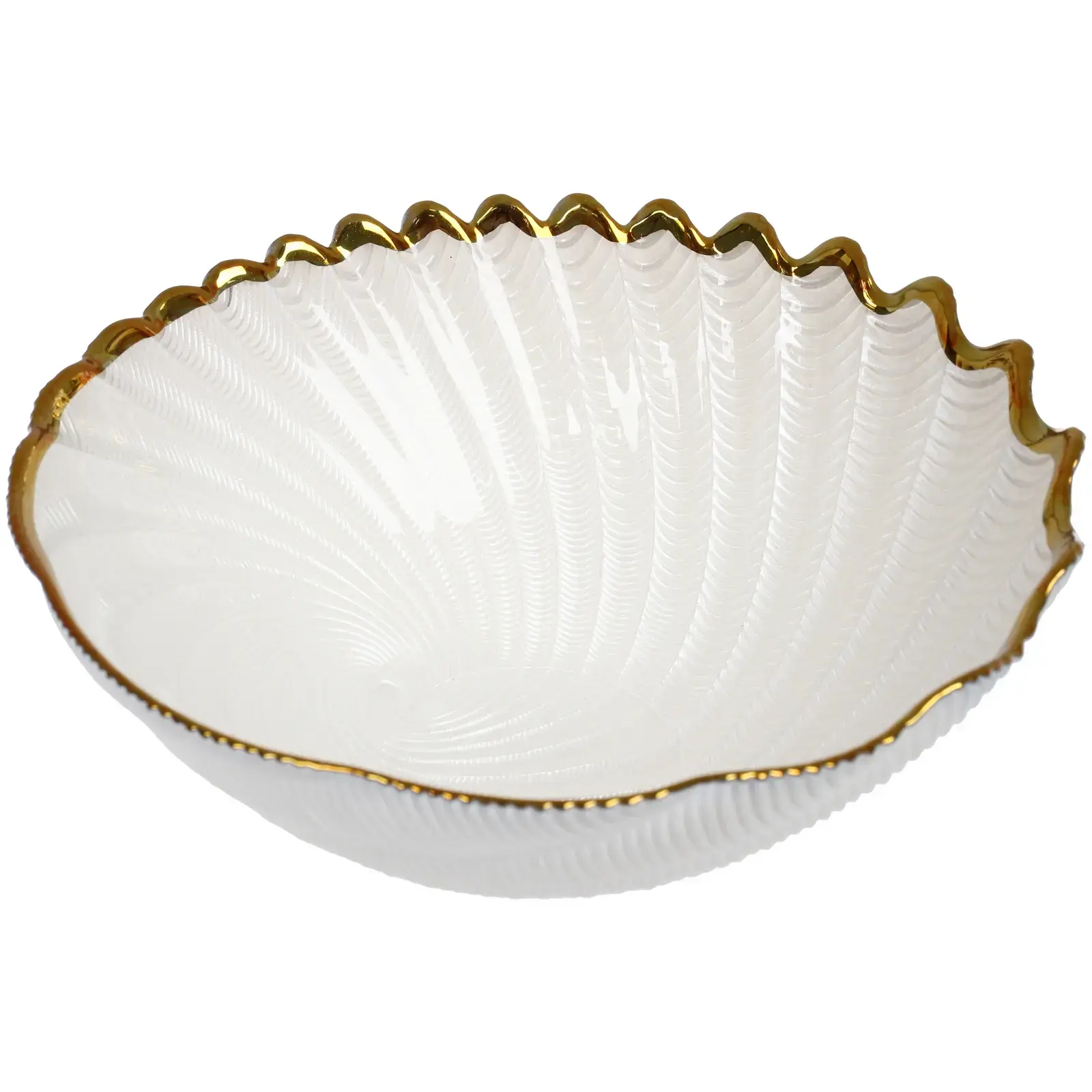 Строгая круглая форма диаметром 20 см и глубиной 7.5 см обеспечивает удобство использования. Рифленая поверхность и золотистый ободок создают премиальный внешний вид.
