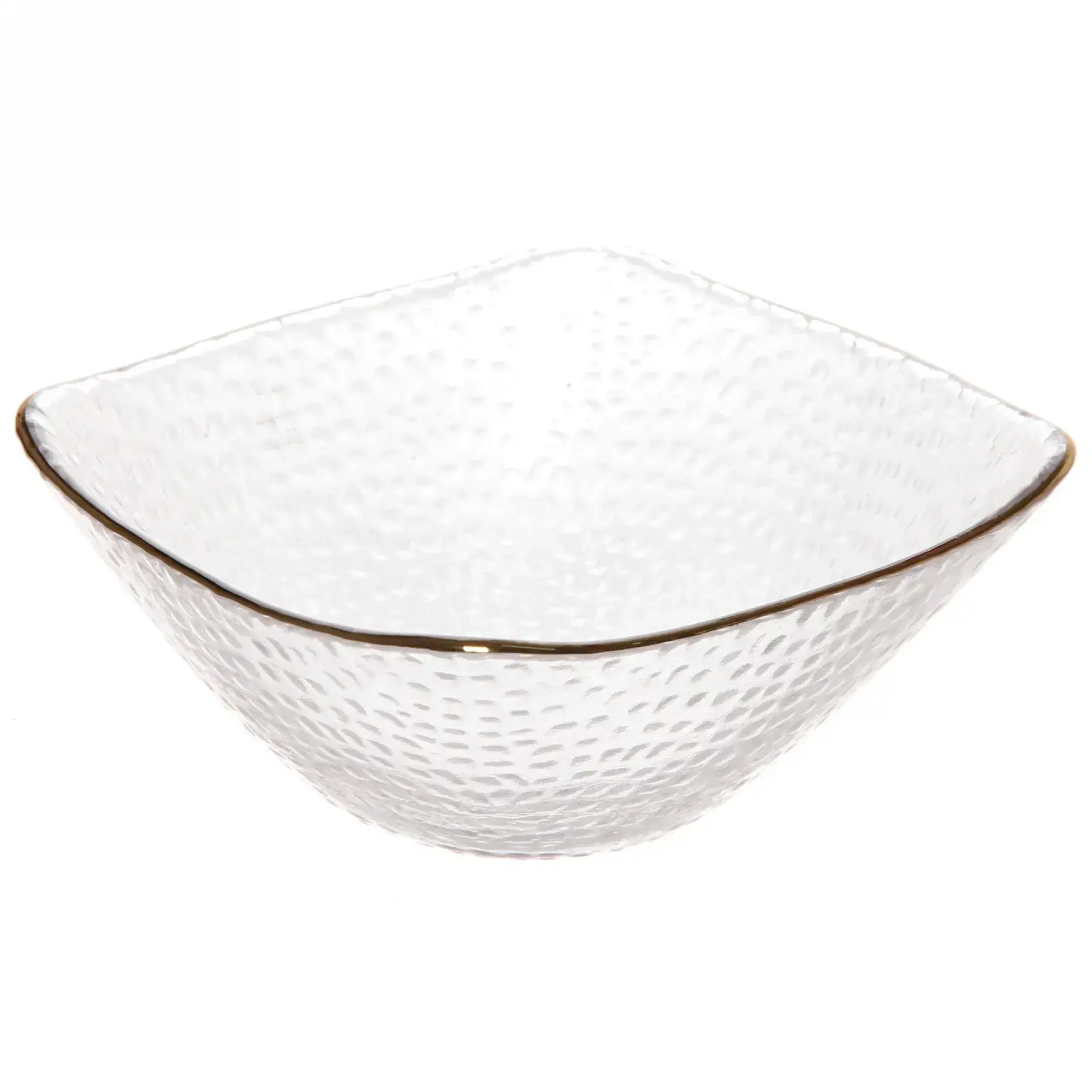 Салатник стеклянный «ICE CRYSTAL» 14х6,5см, прозрачный, золотистая окантовка, рельефная поверхность
