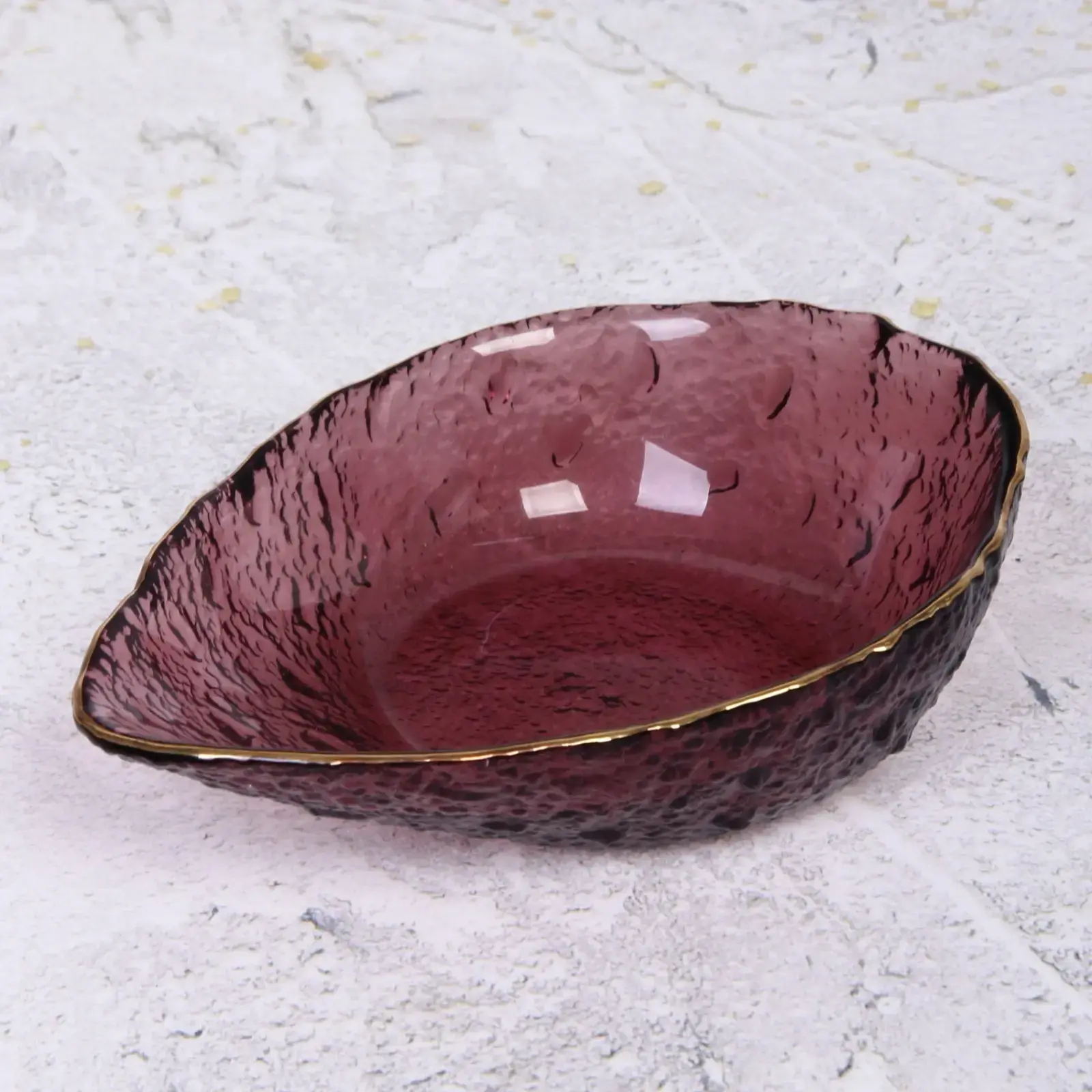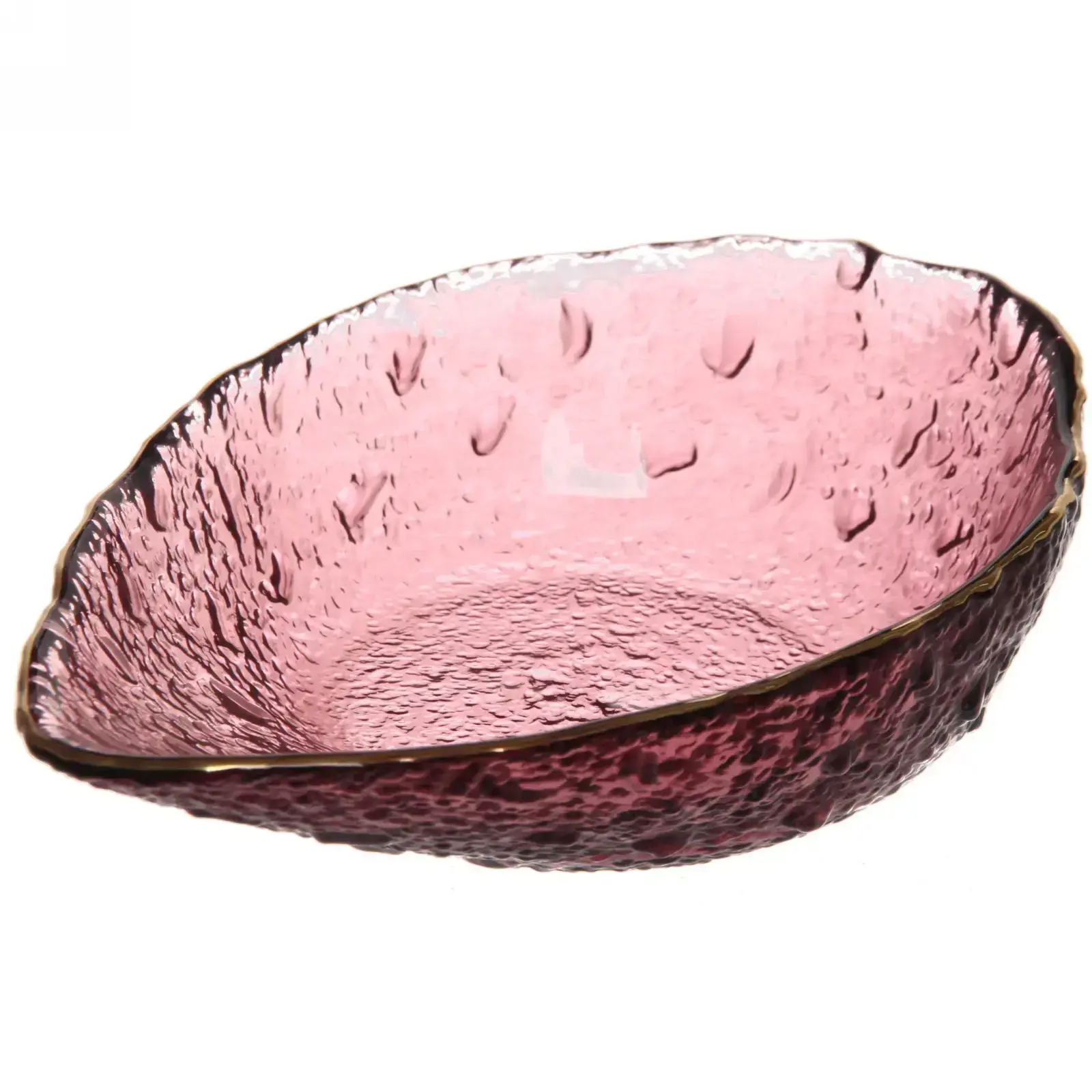 Салатник из закалённого стекла «ICE CRYSTAL» 15 см, сиреневый с золотой окантовкой, форма листа
