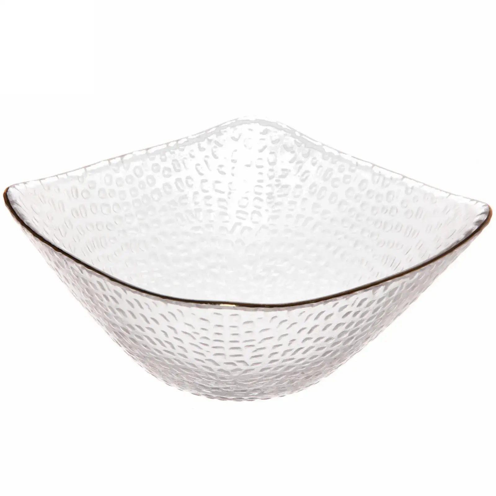 Погрузитесь в мир элегантности и стиля с салатником «ICE CRYSTAL». Этот прозрачный стеклянный салатник станет идеальным дополнением к вашему столу, подчеркивая красоту подаваемых блюд. Его изысканный дизайн с золотистым ободком добавляет нотку роскоши, а текстурированная поверхность создает уникальный визуальный эффект, который привлечет внимание ваших гостей.