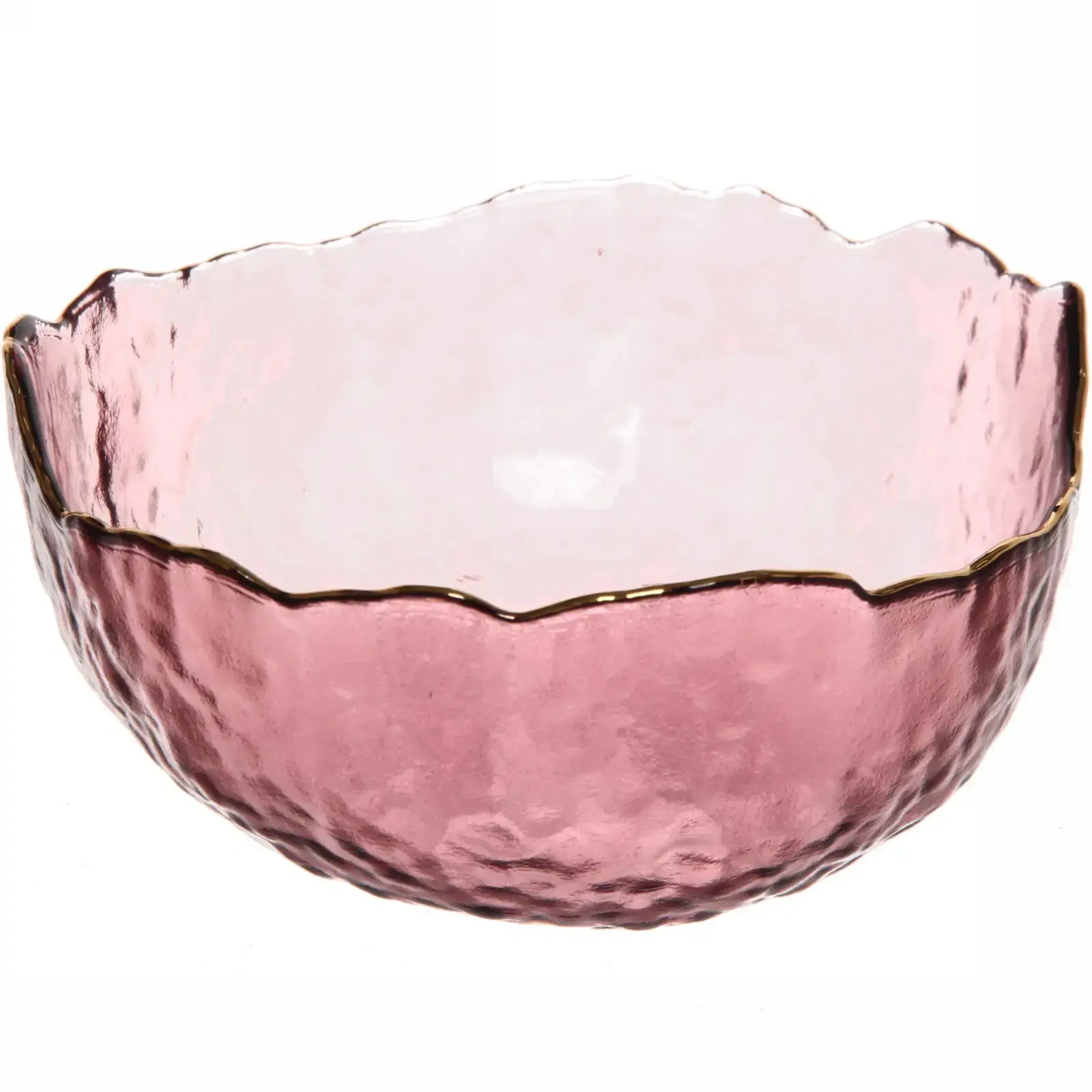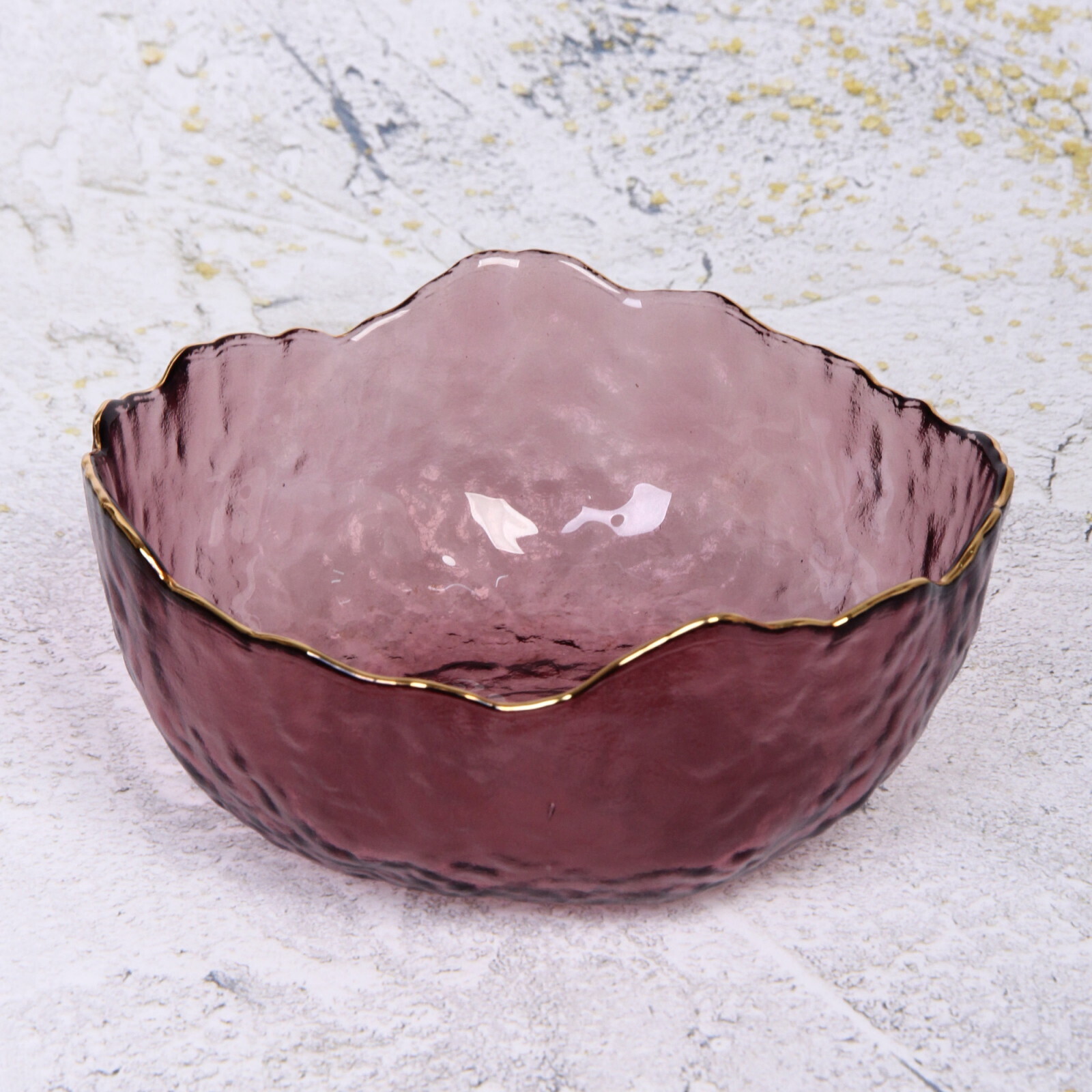 Салатник стеклянный «ICE CRYSTAL» 16см, закаленное стекло, сиреневый с золотистой окантовкой, волнистый край