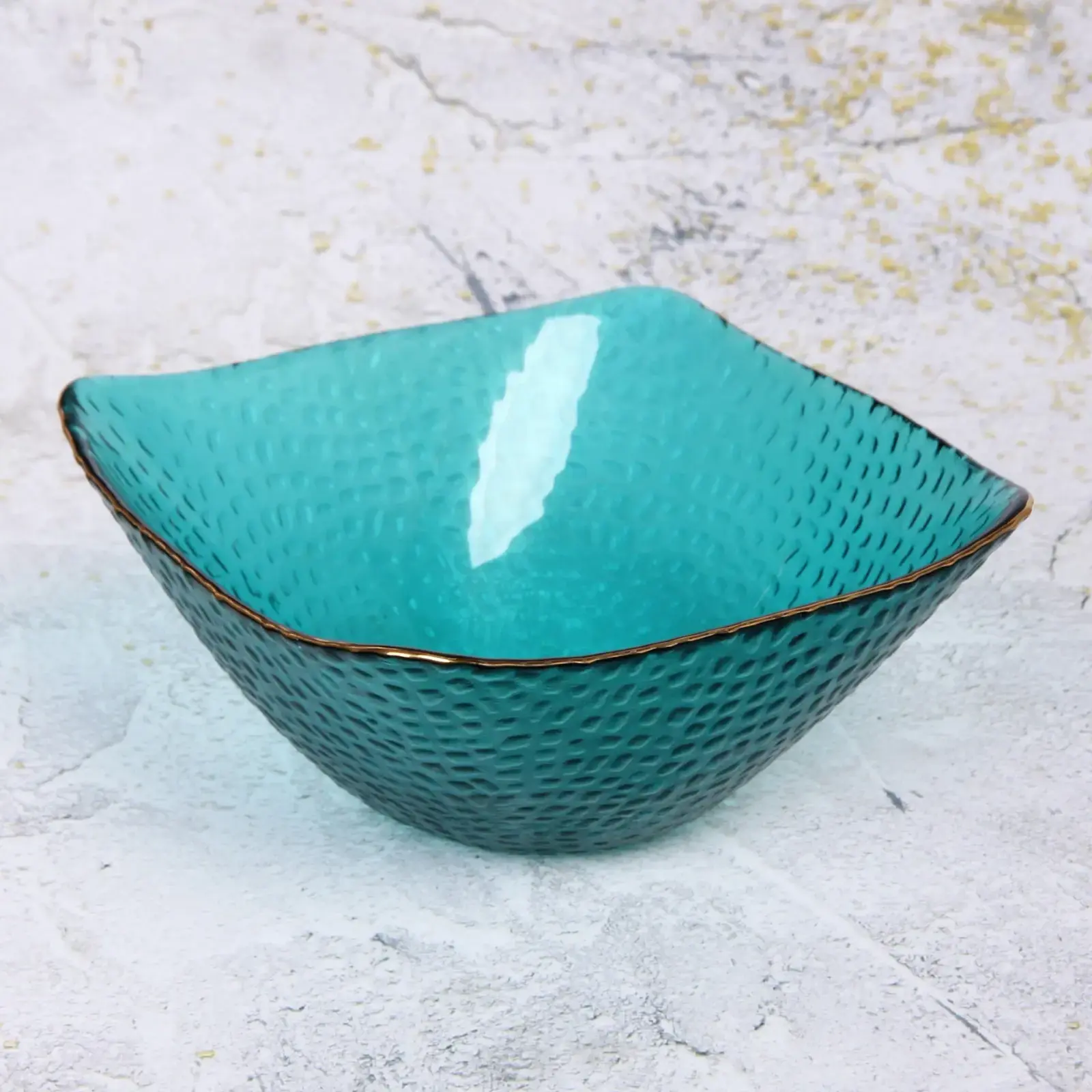 Салатник стеклянный «ICE CRYSTAL» 18×8,5 см, морской, квадратный с золотистой окантовкой