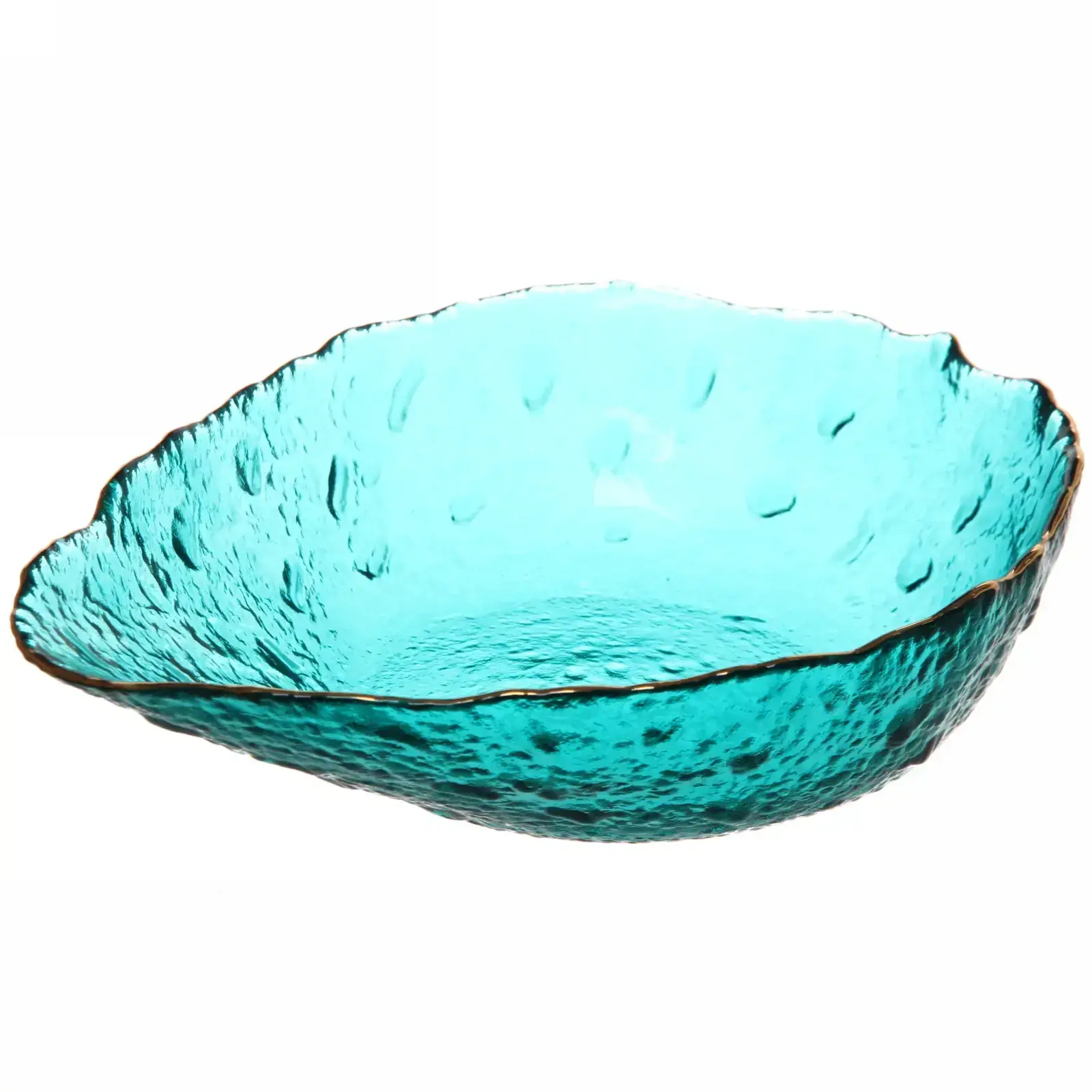 Салатник «ICE CRYSTAL» 19,5 см, закалённое стекло, морская волна, золотая окантовка