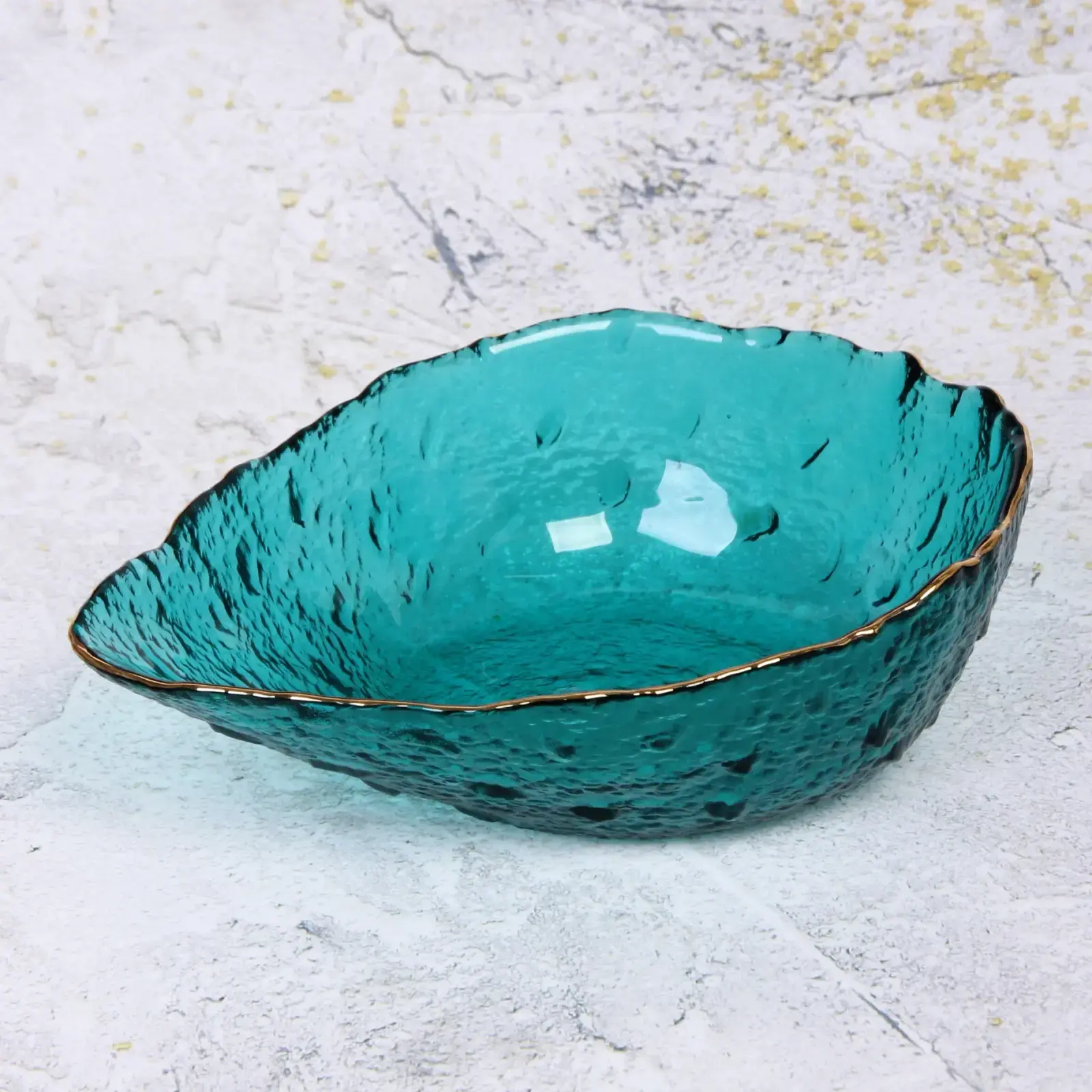 Салатник «ICE CRYSTAL» сочетает в себе практичность и декоративную эстетику, становясь универсальным акцентом вашего стола. Его волнообразная форма с золотистой окантовкой создаёт эффект драгоценного предмета интерьера, а прозрачный бирюзовый оттенок добавляет ноту свежести в любую сервировку.